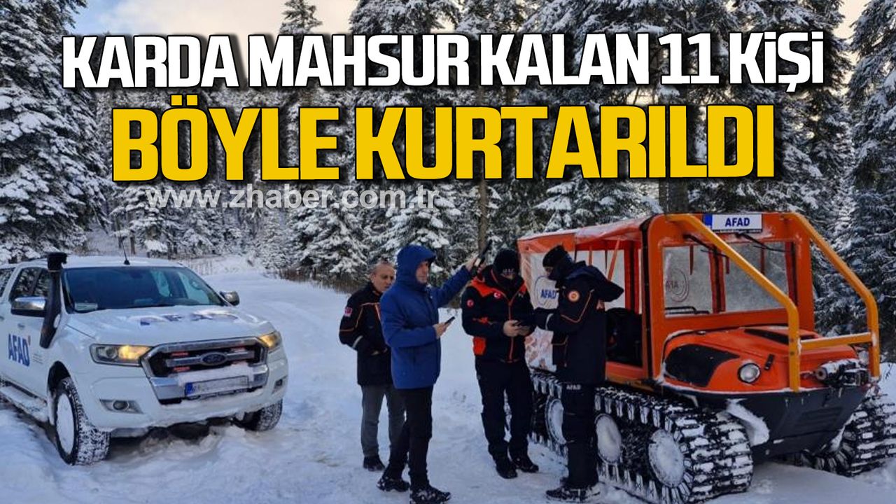 1030 rakımlı Ahmetusta mevkisinden 78 AY 479 ve 78 ABV 633 plakalı araçlarıyla Ömür Ahmet Kıran mevkisine çıkan Doğukan G., Başar K., Umutcan T., Onur A., Muharrem A. ve Furkan S. ile toplam 11 kişi 50 santimetreyi geçen kar nedeniyle mahsur kaldı. Araçlarını karda ilerletemeyen şahıslar, 112 Acil Çağrı Merkezine ihbarda bulundu. Bölgeye Afet ve Acil Durum Yönetimi ekipleri sevk edildi. Karda mahsur kalan 11 kişi 8x8 amfibik araç ile kurtarıldı. 11 kişinin yapılan sağlık kontrollerinde durumlarının iyi olduğu belirlendi.