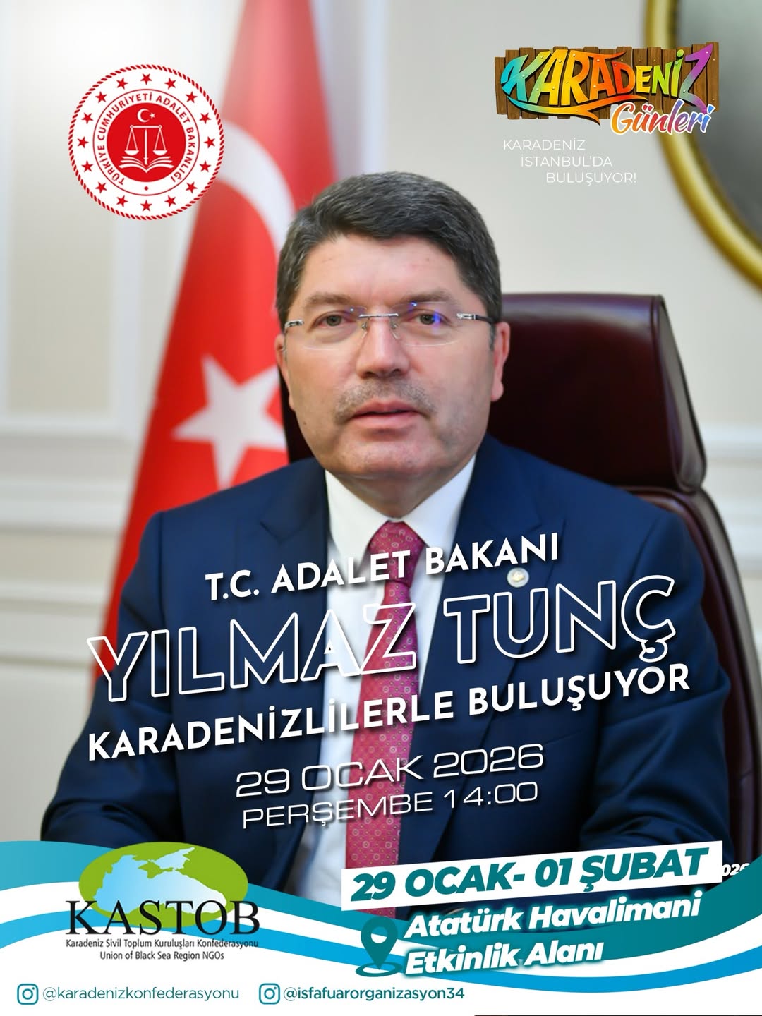 Karadeniz’in kültürünü, müziğini ve güçlü dayanışma ruhunu İstanbul’da buluşturacak Karadeniz Günleri etkinliğinin açılış kurdelesini Adalet Bakanı Yılmaz Tunç kesecek.