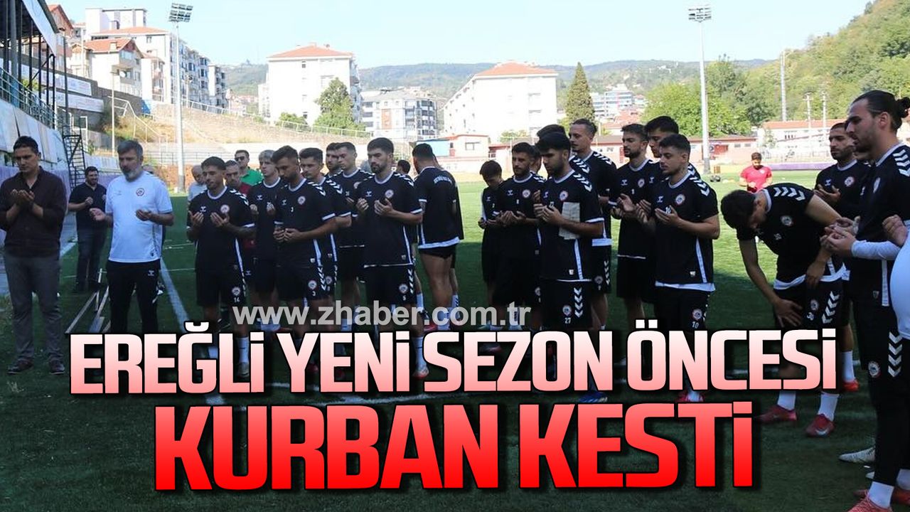 Nesine 3. Lig 3. Grup temsilcimiz Kdz. Ereğli Belediyespor, yarın saat 15.00’da deplasmanda Etimesgutspor ile oynayacağı olan Ziraat Türkiye Kupası 1. Eleme Turu maçı ve yeni sezon öncesinde dualar eşliğinde kurban kesti. Şehit Vefa Karakurdu Stadı’nda gerçekleştirilen kurban kesimine Kulüp Başkanı Recep Yılmaz, yönetim, teknik heyet ve futbolcular katıldı. Yapılan törende sezonun sakatlıksız, kazasız ve belasız geçmesi temennisinde bulunuldu. Ayrıca Eflatun-beyazlı temsilcimiz kurban kesimi sonrasında dün Etimesgut Belediyespor maçı hazırlıklarını tamamlayarak bugün Ereğli’den ayrılarak yarın oynanacak olan maç öncesinde karayolu ile Ankara’ya gidecek.