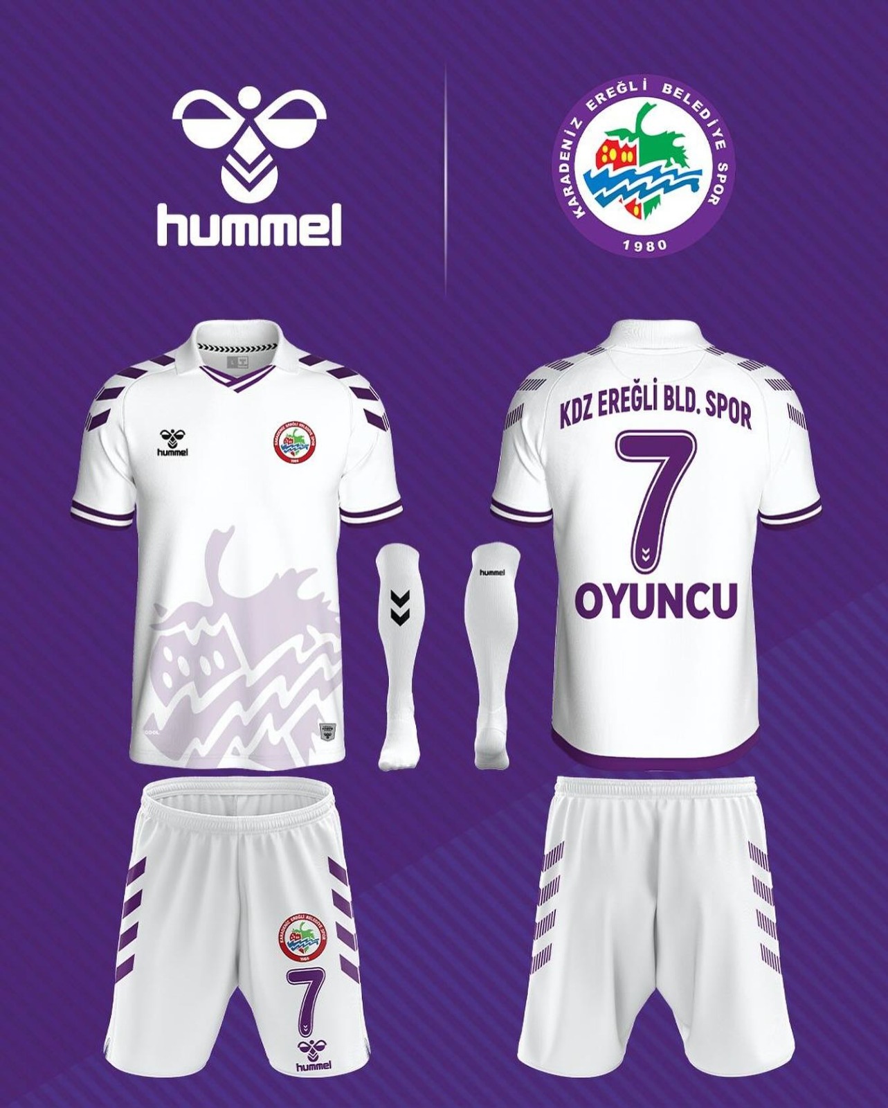 Nesine 3. Lig 3. Grup temsilcimiz Kdz. Ereğli Belediyespor’un bu sezon resmi maçlarda giyeceği yeni sezon formaları kamuoyuna tanıtıldı. Eflatun-beyazlı temsilcimiz Hummel markasıyla yaptığı iş birliği neticesinde 3 farklı forma tasarımı hazırlandı.Temsilcimiz Kdz. Ereğli Belediyespor, mevcut forması olan çubuklu Eflatun-beyazlı forma olmak üzere Zonguldak’ın simgesi olan madencilik ruhunu ve emeğin kutsallığını temsil eden siyah forma ve önünde eflatun rengi ve beyaz forma kombinasyonlarıyla tasarlanmış formaları eflatun-beyazlı taraftarların beğenisine sundu. Taraftarlar ise yapılan 3 formayı beğendiği gözlendi. Ayrıca futbolcuların giyeceği yeni formalar önümüzdeki günlerde satışa sunulacak.