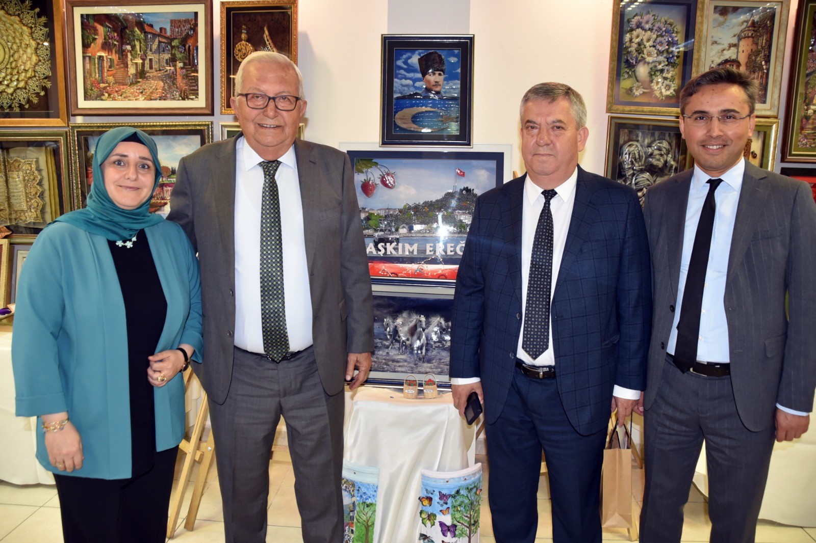 “Kdz. Ereğli’de yaşayan insanlar, bir takım sanatsal olaylara meraklı olan insanlar eğer Atatürk Kültür Merkezi’ndeki Halk Eğitim Merkezi’nin açtığı bu sergileri göremiyorsa, kendi içimizden insanların yaptığı ürünleri göremiyorsa çok büyük kayıpları var demektir. Biz meclis üyeleriyle beraber bütün sergileri dolaştık. İnanılmaz güzellikler gördük. Zamanında ilk belediye başkanı olduğum yıllarda Cumhuriyet Halk Evlerini yapmıştım. Kepez Halk Evini yaptım. Oralarda sanatsal faaliyetlerde bulunacak insanlar yoktu. Evlerden kadınları davet ediyorduk. Ama artık öyle bir noktaya geldik ki artık buralar yeterli değil. Şimdi önümüzdeki dönem büyük bir Sanat Atölyesi kurmak için hazırlıklara başladık. Çünkü inanılmaz bir sanatçı potansiyeli var aramızda. Bu inanılmaz bir olay. Ereğli’de sanata karşı çok büyük bir ilgi var. Yeni bir sanat atölyesi açmak zorunda olduğumuzu bu sergiyi gezdikten sonra çok daha iyi anladım. Ben Ereğli’de yaşayan bütün insanlarımızdan bu sergiyi gezmelerini rica ediyorum. Halk Eğitim Müdürlüğü’ne, İlçe Milli Eğitim Müdürlüğü’ne teşekkür ediyorum, köyden gelen, mahallelerden gelen, cumhuriyet halk evlerinde atölyelerde çalışan bütün sanatçılarımızı yürekten kutluyorum. Allah yollarını açık etsin, çok gururlandım, çok onurlandım.”