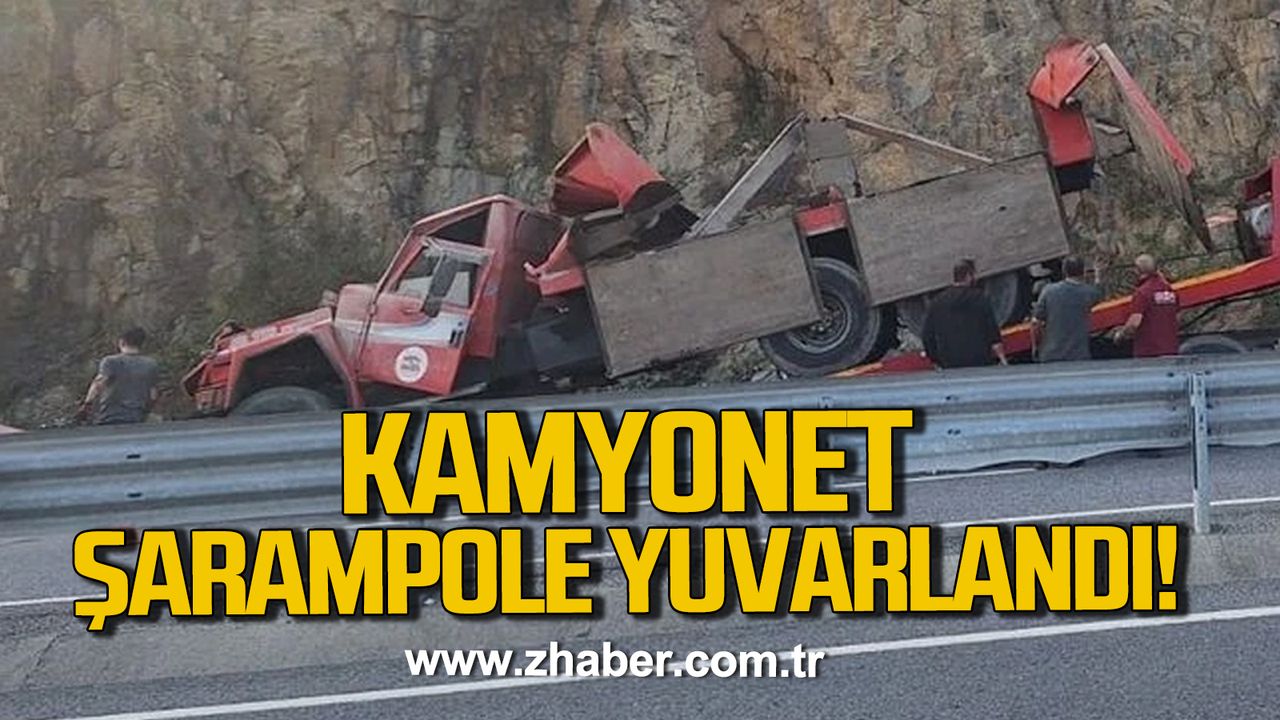 Alınan bilgiye göre, 67 EA 016 plakalı mıcır yüklü harfiyat kamyonu, seyir halindeyken sürücüsünün kontrolünden çıktı. Kontrolden çıkan kamyon, savrularak devrildi.