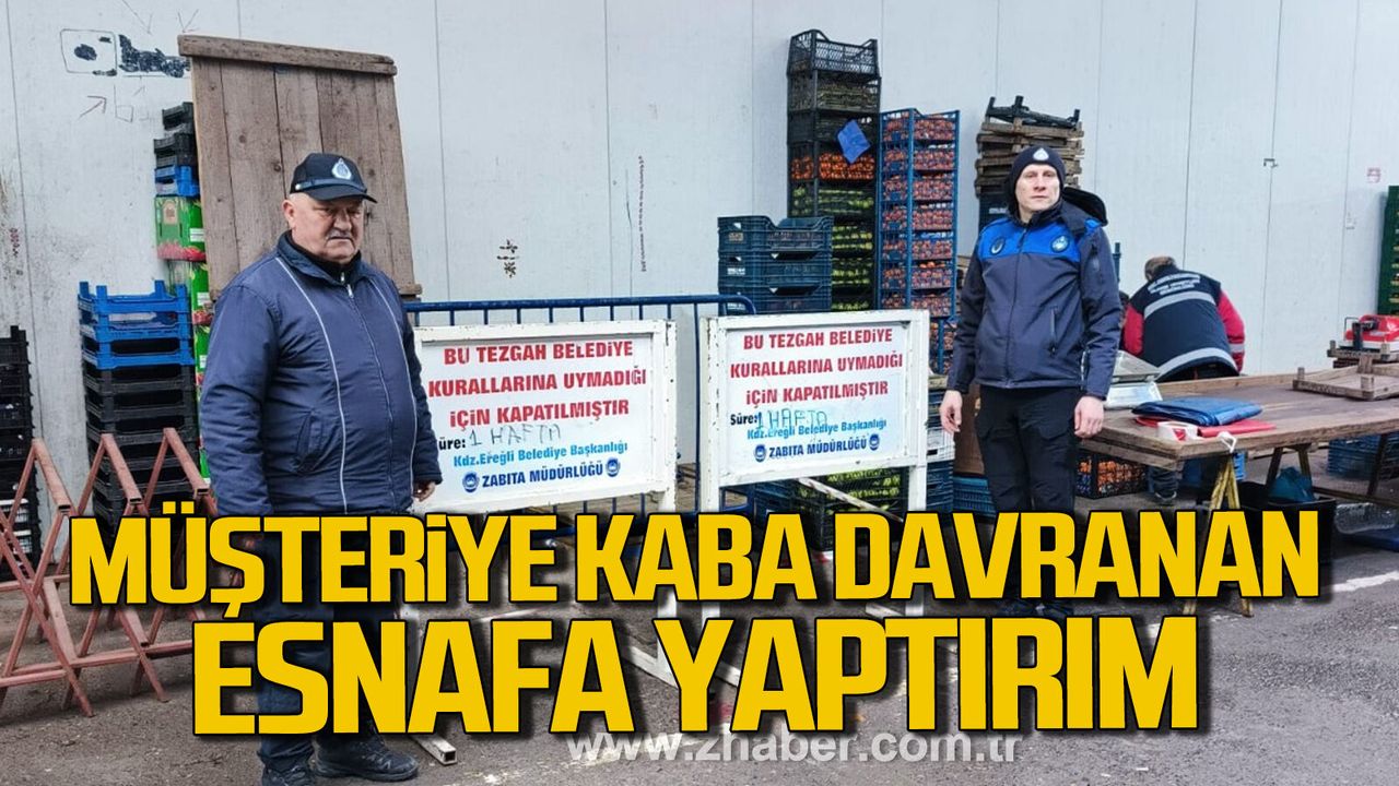 Kdz. Ereğli Belediyesi Zabıta Müdürlüğü ekipleri, gelen şikayetler üzerine kapalı pazaryerinde denetim gerçekleştirdi. Belediye encümeni kararı doğrultusunda söz konusu esnafın tezgahı 1 hafta süreyle kapatılırken, ayrıca cezai işlem de uygulandı.