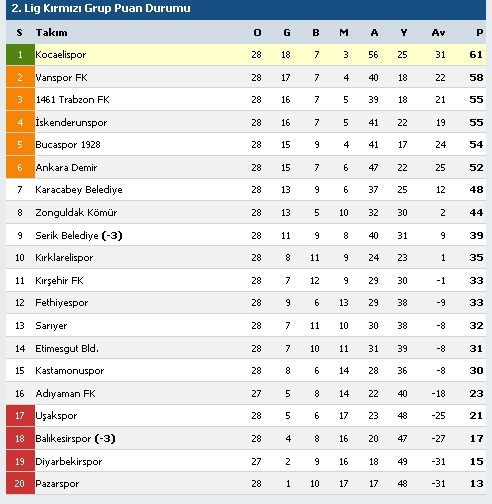 Saat 14.00 Saha: Kocaeli Stadı, Kocaelispor-1461 Trabzon (Hakemler: Yunus Dursun, Ferdi Karadoruk, Ali Uğurtan Demirtaş)
