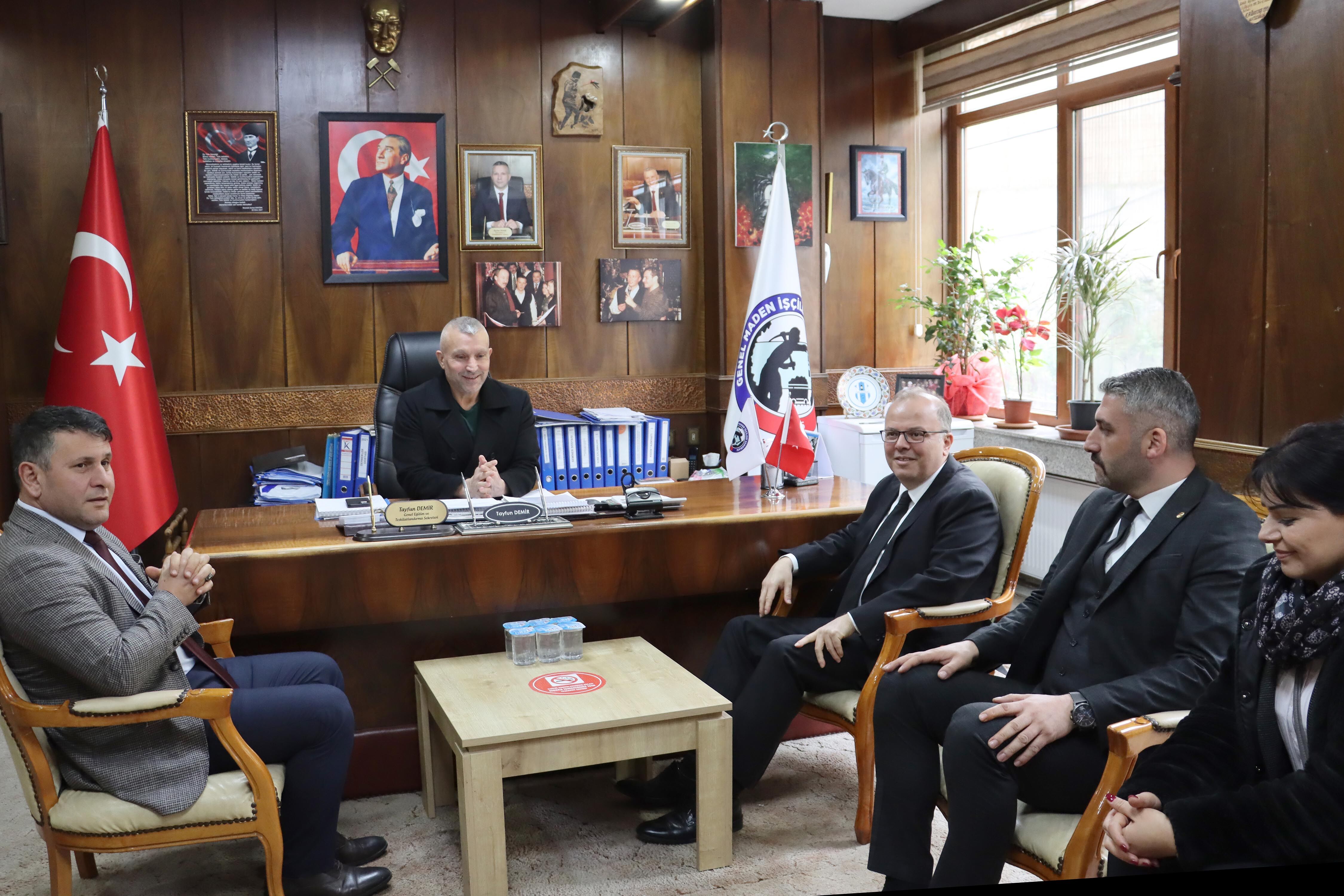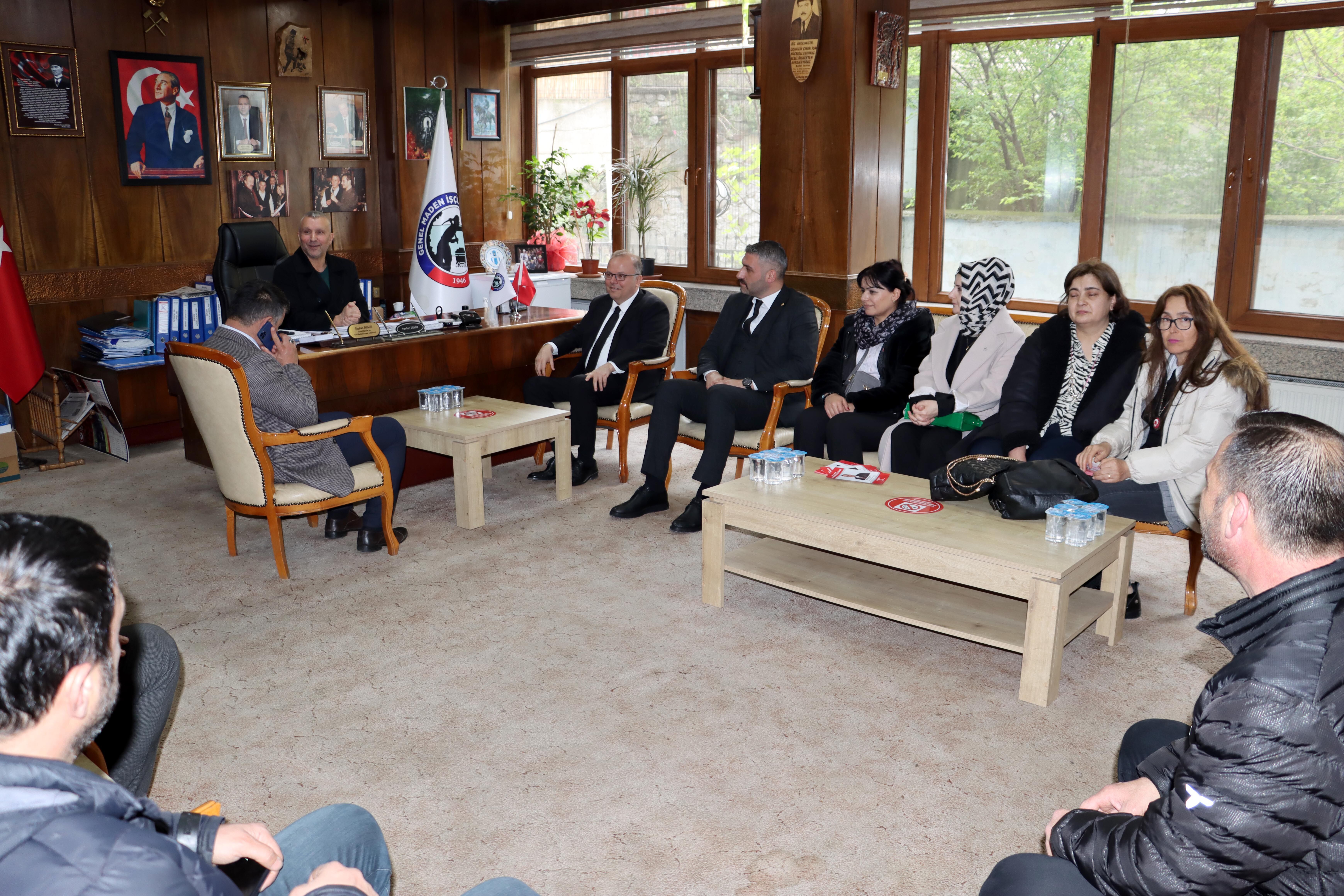 MHP Zonguldak Milletvekili Adayı Murat Kotra, beraberinde İl Başkanı Mustafa Öztürk ve partililerle birlikte GMİS’i ziyaret etti. Genel Teşkilatlandırma ve Eğitim Sekreteri Tayfun Demir ile görüşen Kotra, madencilerin desteğini beklediklerini ifade etti. Demir de, Cumhurbaşkanı Recep Tayyip Erdoğan tarafından açıklanan TTK’ya bin işçi alımında sayının arttırılması için destek beklediklerini söyleyerek, “Maden işçileri adına sendikamız adına ve şahsım adına hoş geldiniz. Önümüzde bir seçim süreci var. Yarın Cumhurbaşkanımız ve Devlet bey Filyos’ta olacak. Zonguldak’ın konularına, sıkıntılarına hakimsiniz. Bin işçi alımının tekrar gözden geçirilip arttırılması için taleplerimiz var. Sizlerin de o yönde açıklamalarınızı görüyoruz. Bu bizi mutlu ediyor. Yalnız kalmadığımızı düşünüyoruz. Zonguldak’ta siyaset yapacak kimse demir çeliği sanayi ve kömürü bir arada tutuyorsa bu bizim için çok önemli. Ben şahsım adına sizin bu düşüncelerinizden dolayı teşekkür ediyorum. Ben bu düşünceleri destekliyorum. Demir çelik ile kömürü anlatmayan siyasetçi kenti iyi tanımamıştır diye düşünüyorum. İyi ki geldiniz. Düşünceleriniz ve desteğiniz bizler için çok önemli.” dedi.