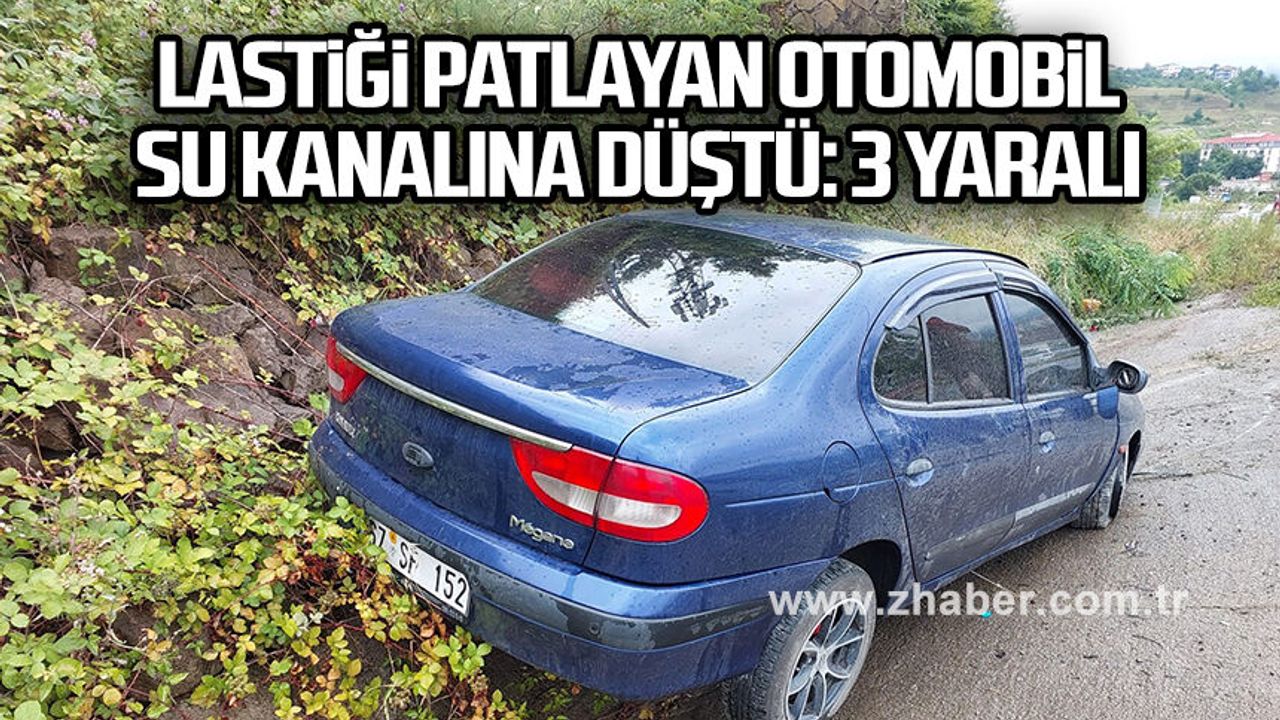 Kaza saat 14.00 sıralarında Ereğli Akçakoca yolu Ömerli mevkiinde meydana geldi. İddiaya göre, Ereğli istikametine seyir halinde olan B.İ. idaresindeki 67 SF 152 plakalı otomobilin lastiği bilinmeyen bir sebeple patladı. Direksiyon hakimiyetini kaybeden sürücü önce kaldırıma çarpıp ardından yaklaşık 20-25 metre sürüklendikten sonra su kanalına düştü. Kazada araçta yolcu olarak bulunan F.İ., B.K.İ ve E.İ. yaralanırken olayı gören sürücüler yaralıların yardımına koşup durumu 112 Acil Çağrı Merkezi'ne bildirdi. İhbar üzerine olay yerine gelen sağlık ekipleri yaralılara ilk müdahalesini yaptıktan sonra ambulansla Ereğli Devlet Hastanesi'ne kaldırdı. Araç sürücü B.İ. ise başından hafif yaralanması nedeniyle hastaneye kendi imkanıyla gitti . Tedavi altına alınan yaralıların sağlık durumlarının iyi olduğu öğrenildi.