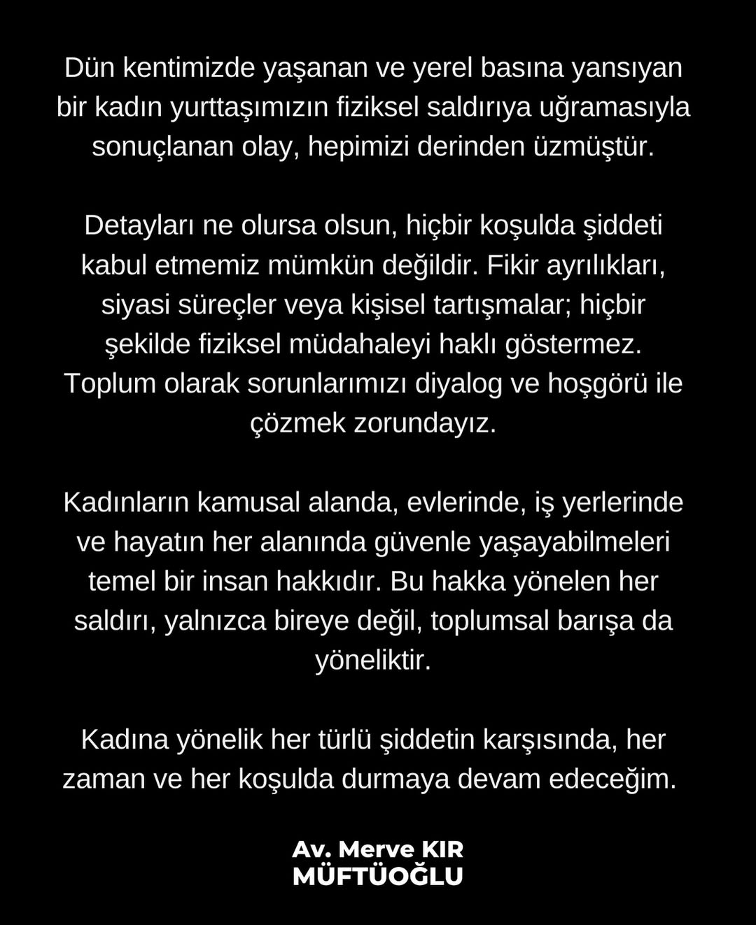 “Dün kentimizde yaşanan ve yerel basına yansıyan bir kadın yurttaşımızın fiziksel saldırıya uğramasıyla sonuçlanan olay, hepimizi derinden üzmüştür.