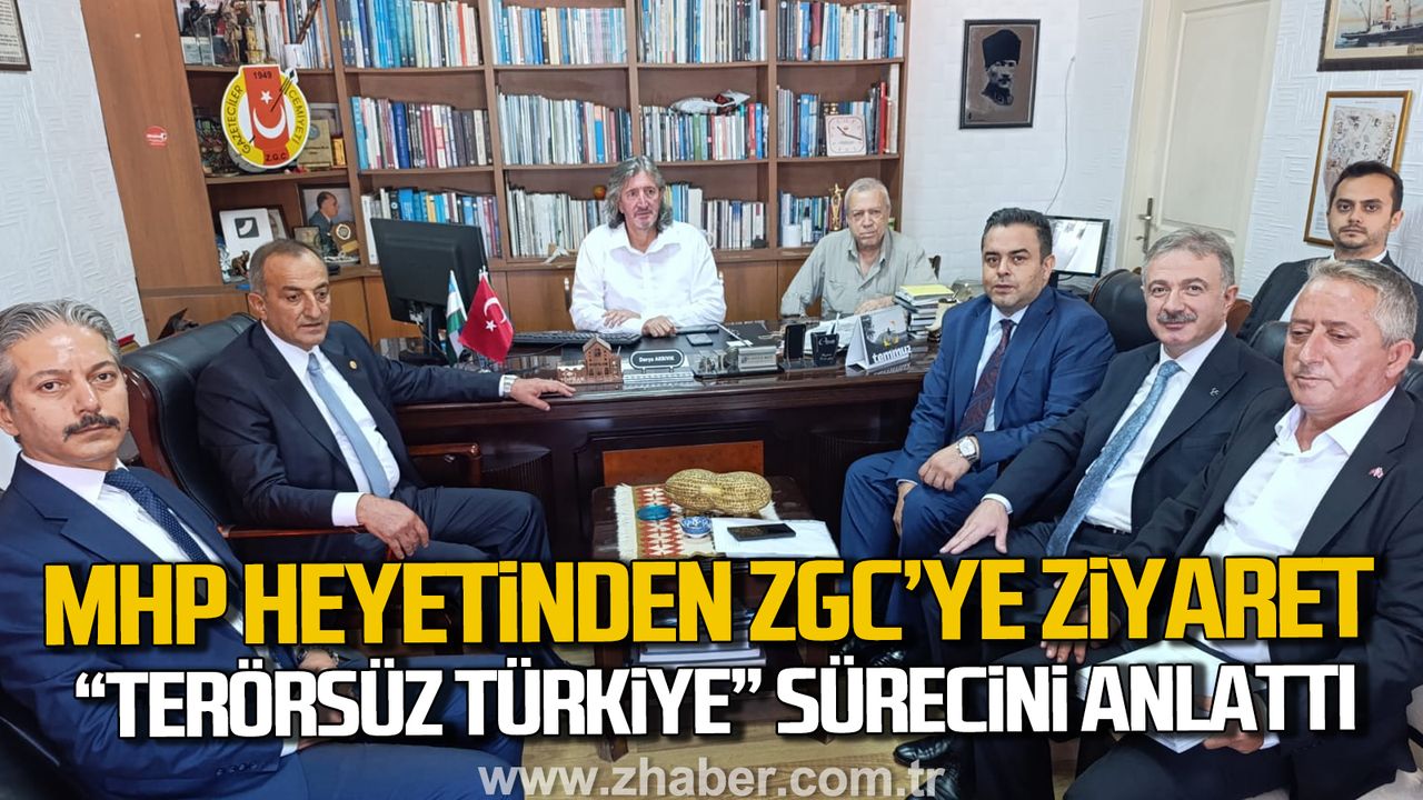 Milliyetçi Hareket Partisi (MHP) Genel Başkanı Devlet Bahçeli öncülüğünde başlatılan “Asırlık Birlik, Sonsuz Kardeşlik” temasıyla gerçekleştirilen “Terörsüz Türkiye İçin Milli Birlik ve Dayanışma Buluşmaları” kapsamında MHP heyeti Zonguldak Gazeteciler Cemiyeti’ni (ZGC) ziyaret etti.
