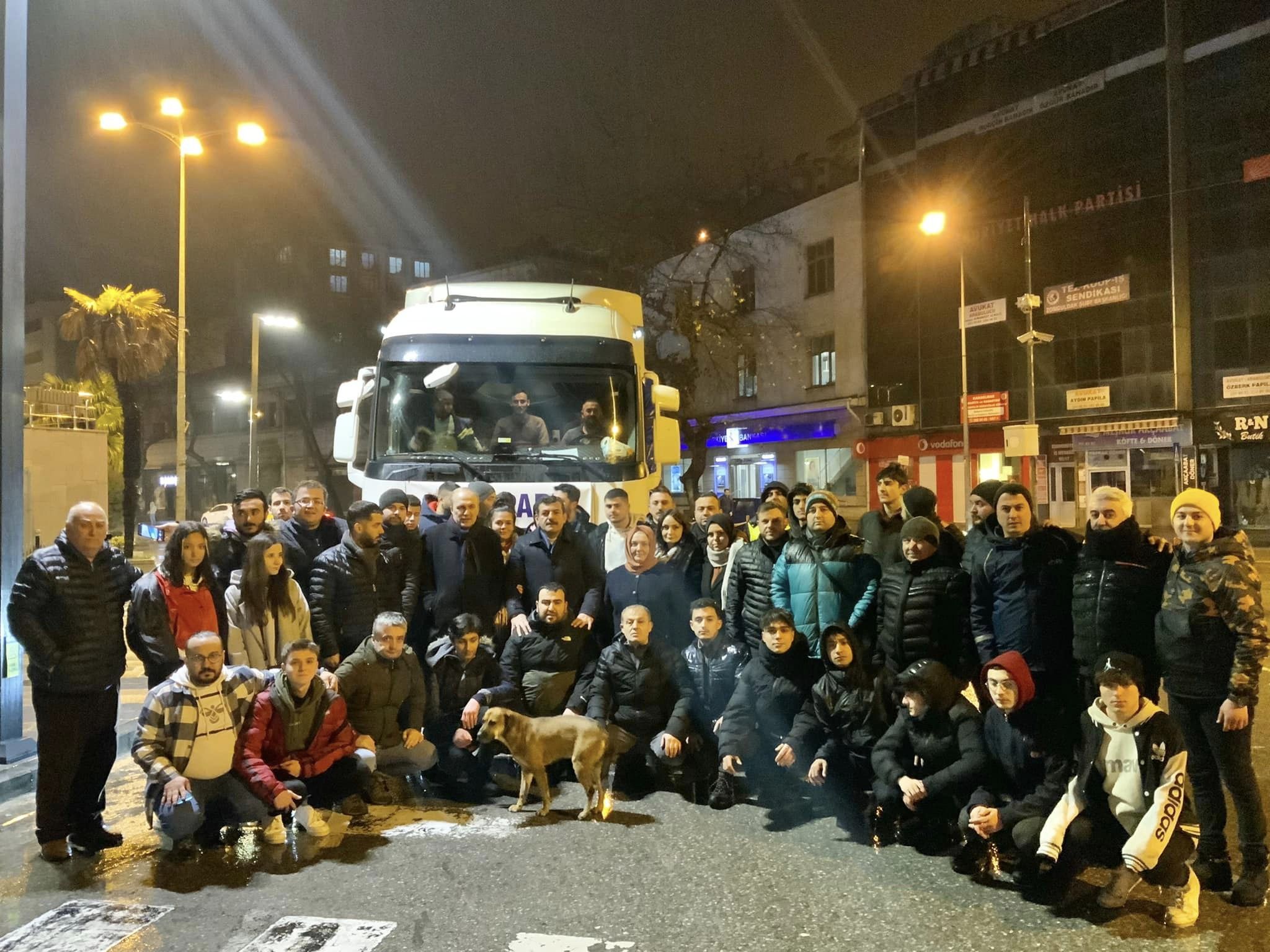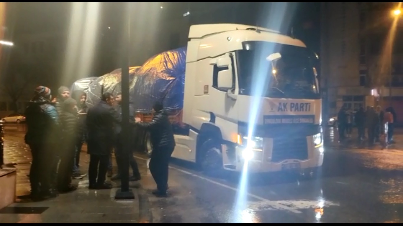 Bölgenin ihtiyaçları doğrultusunda malzeme nakli aralıksız devam ederken Ak Parti Zonguldak İl Başkanlığı’nın yardım tırı da gece saatlerinde yola çıktı.