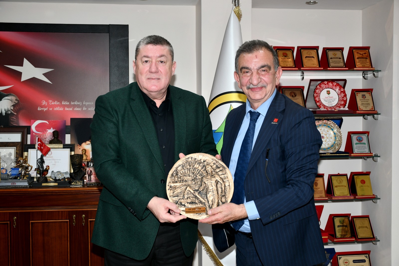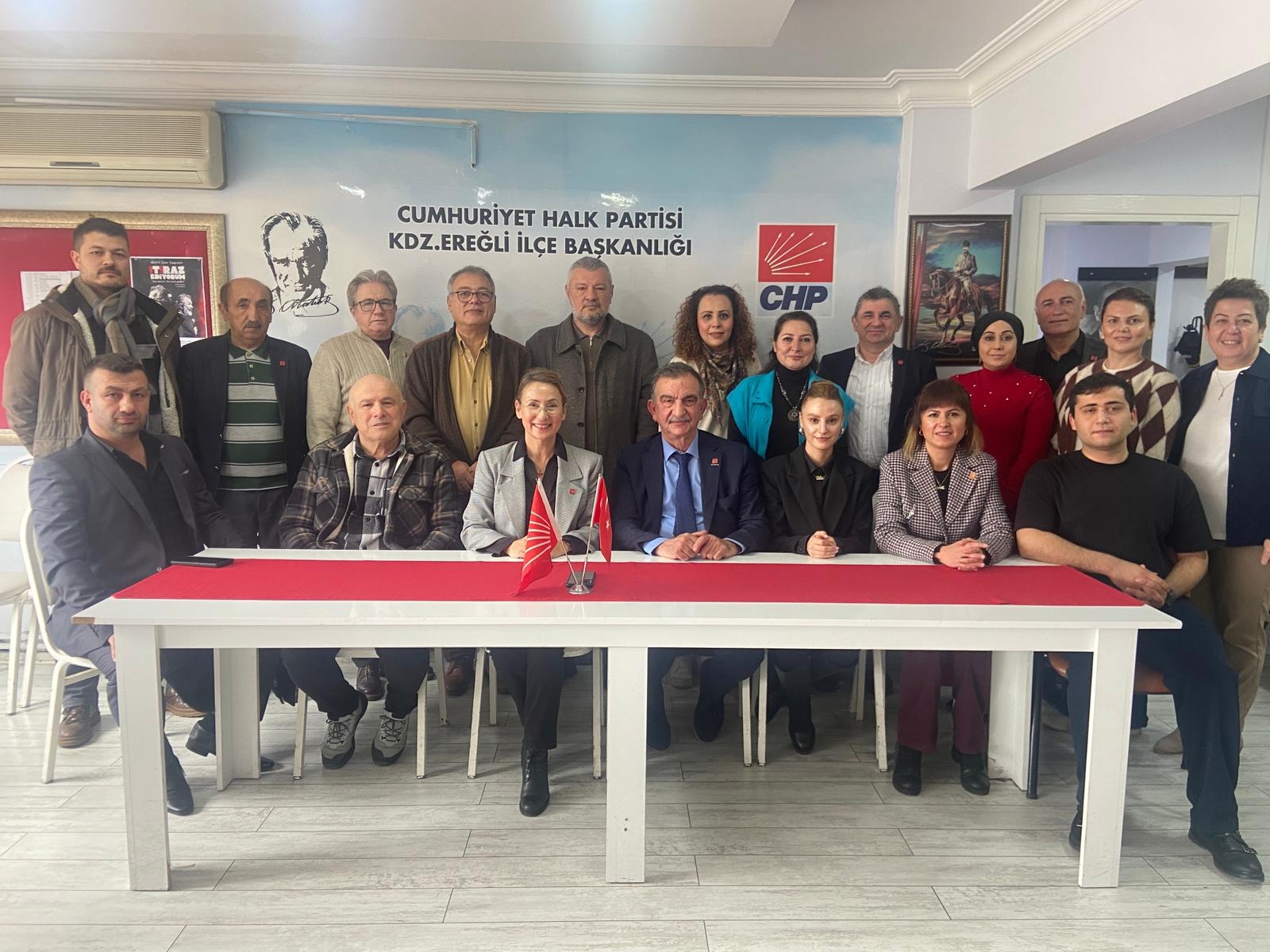 Cumhuriyet Halk Partisi (CHP) Zonguldak Merkez İlçe Başkanı Nazmi Özden ve yönetim kurulu üyeleri Ereğli Belediye Başkanı Halil Posbıyık ve Alaplı Belediye Başkanı Nuri Tekin ve Ereğli İlçe Başkanlığı'nı ziyaret etti.