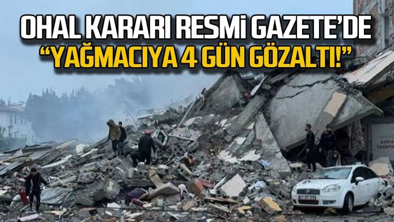 OHAL kapsamındaki kararname ile hırsızlık ve yağma suçlarında gözaltı süresi, yakalama anından itibaren 4 günü geçemeyecek, Cumhuriyet savcısı gözaltı süresini 3 gün uzatabilecek.