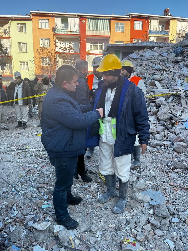 Deprem bölgelerinde arama ve kurtarma çalışmalarını büyük bir özveriyle sürdüren binlerce maden işçisi, durmaksızın bir canlı daha enkazdan kurtarabilmek için mücadelesini sürdürüyor. Kurtardıkları canlarla Türkiye’nin gururu olan maden işçilerini ziyaret ederek destek veren GMİS Genel Başkanı Hakan Yeşil ve yönetim kurulu üyeleri, Hatay, Adıyaman, Kahramanmaraş ve Malatya’da madencileri ziyaret etti. Diğer illerdeki maden işçilerini de ziyaret edecek olan GMİS Yönetim Kurulu, TTK ve MTA işçilerine gösterdikleri dayanışma nedeniyle teşekkür etti.