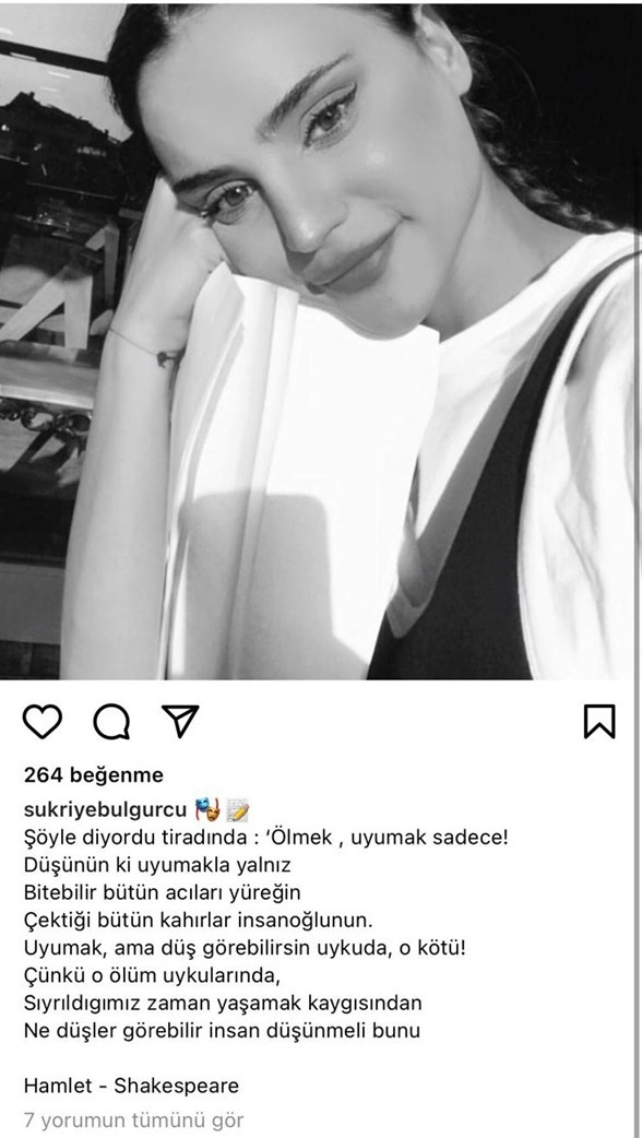 Öte yandan, Hataylı olan Şükriye Bulgurcu’nun 2013 yılında okumak ve oyunculuk eğitimi almak için İstanbul’a geldiği, Kadir Has Üniversitesi Sinema ve Televizyon Bölümü'nden mezun olduğu, Müjdat Gezen Tiyatro Merkezi'nde oyunculuk eğitimi aldığı öğrenildi.