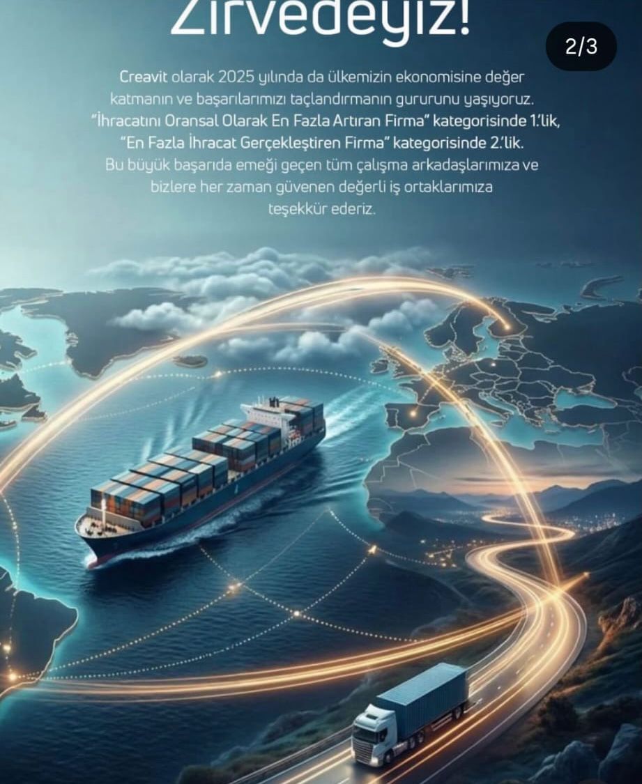 Creavit olarak 2025 yılında da ülkemizin ekonomisine değer katmanın haklı gururunu yaşıyoruz. Bu büyük başarıda emeği geçen tüm çalışma arkadaşlarımıza ve değerli iş ortaklarımıza teşekkür ederiz.”