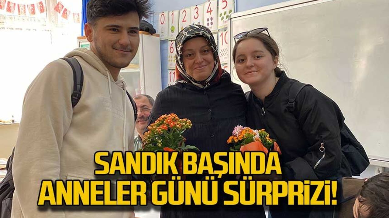 Aynı okulda sandık başında görevli 42 yaşındaki Songül Uçar ise anneler gününde çocuklarının anneler günü sürprizi ile büyük mutluluk yaşadı.