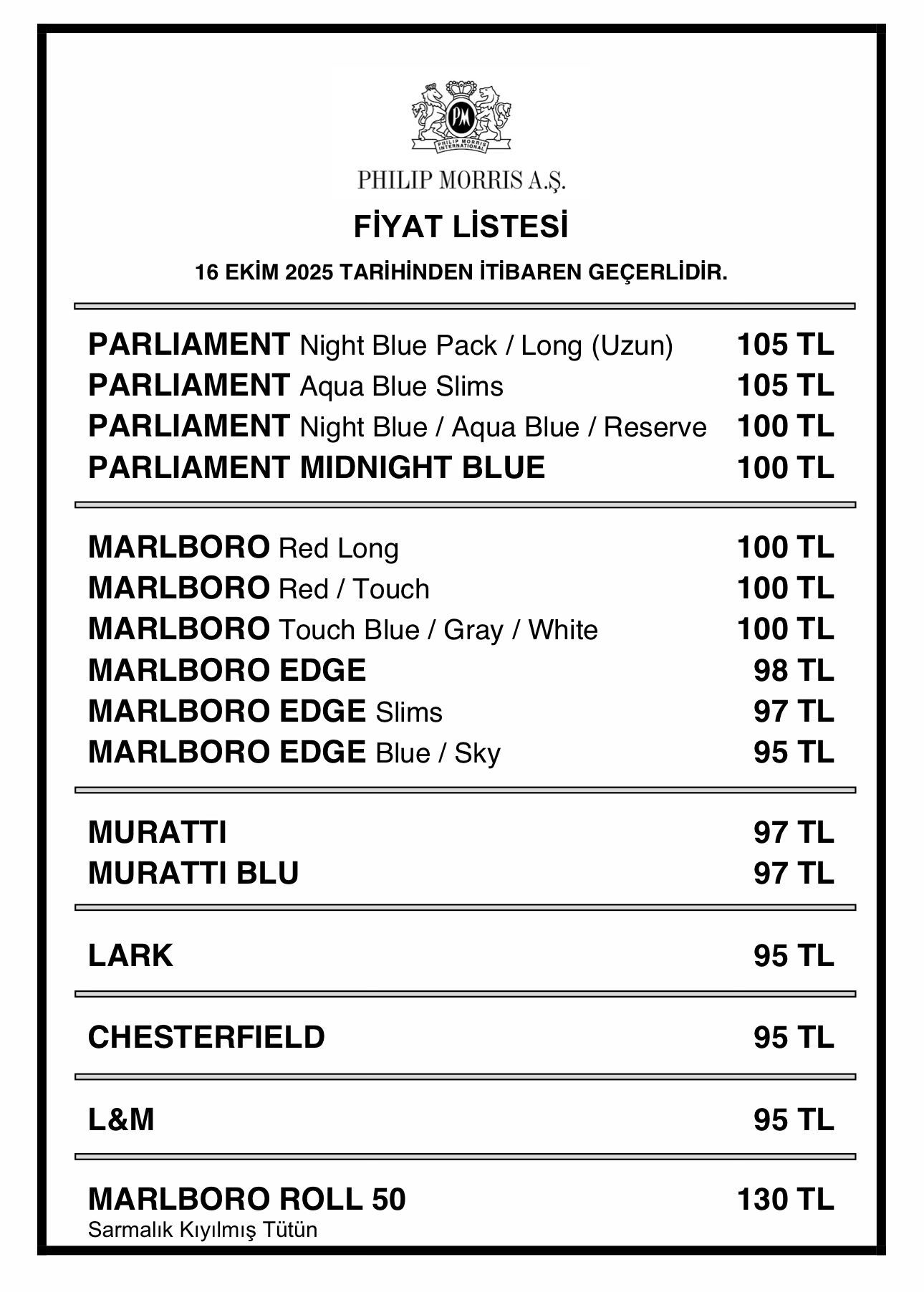 Tütün mamullerinden sigaraya paket başına ortalama 5 lira zam geldi. Philip Morris’in ürettiği en ucuz sigara 95 TL’ye yükseldi.
