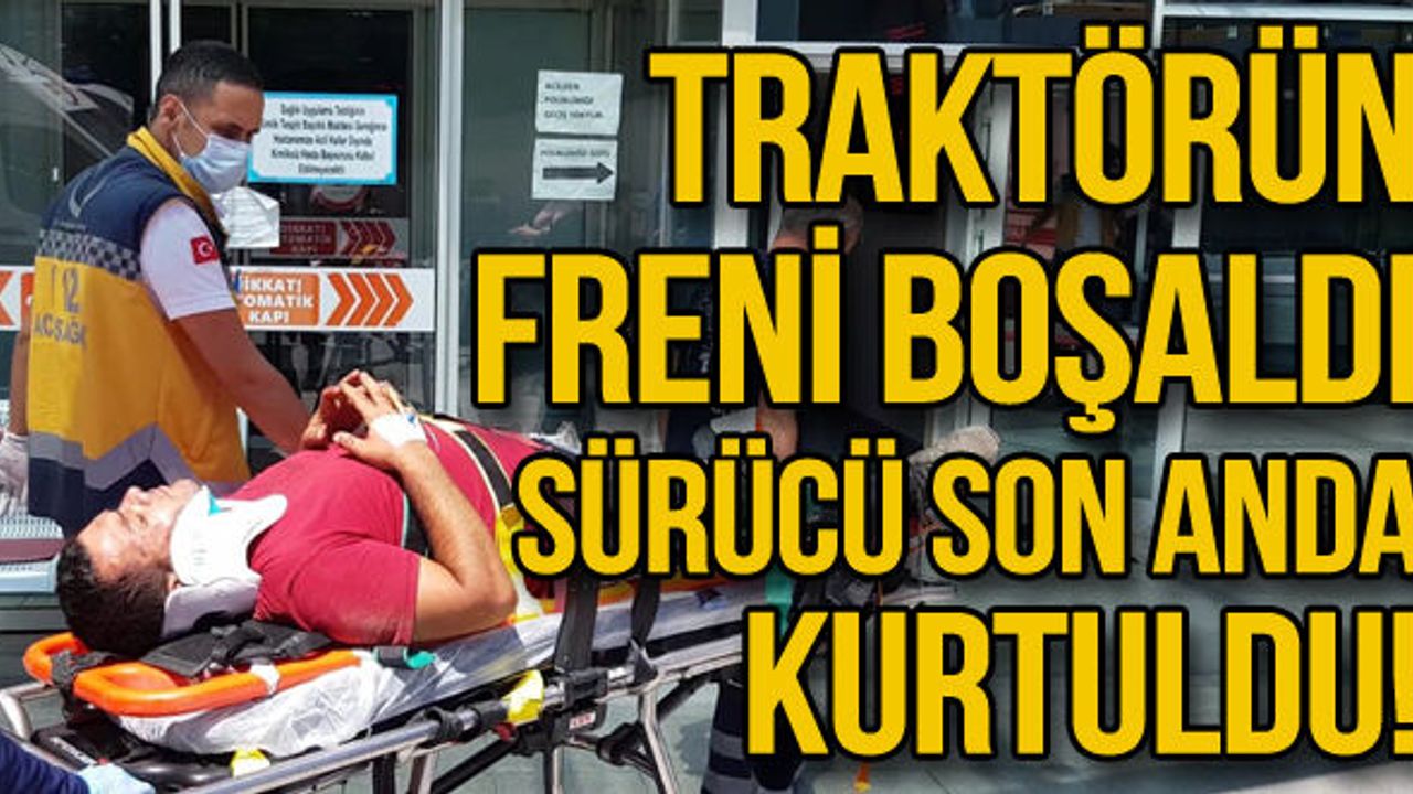 Karabük’ün Eflani ilçesinde rampa aşağıya indiği sırada frenleri boşalan traktörün sürücüsü ölümden atlayarak kurtuldu.