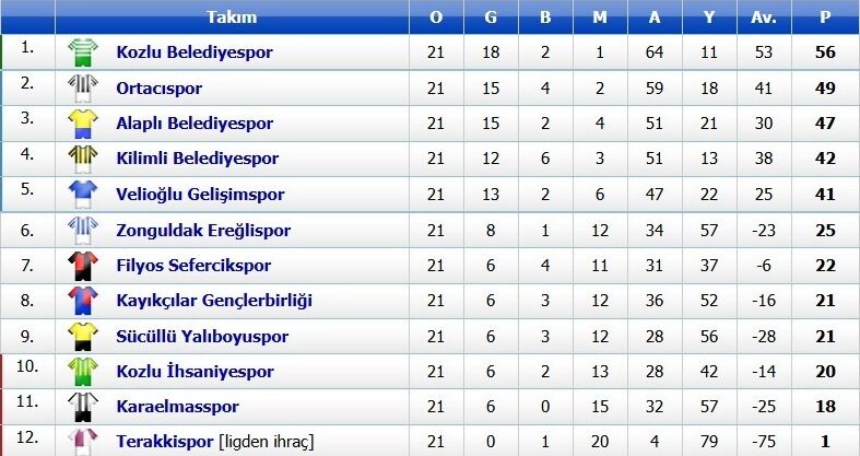 Zonguldak Deplasmanlı Süper Amatör Lig’de 21. hafta karşılaşmaları, Pazar günü oynanan maçlarla tamamlandı ve bu hafta toplam 24 gol kaydedildi. Ligin bitimine yalnızca bir hafta kalmasına rağmen, Kozlu Belediyespor haftalar öncesinden şampiyonluğunu ilan etti. Ortacıspor, Alaplı Belediyespor, Kilimli Belediyespor ve Velioğlu Gelişimspor ise play-off oynamayı garantileyen takımlar oldu. Şampiyon ve play-off’a kalan ekipler netleşirken, kümede kalma mücadelesi son haftaya taşındı. Terakkispor haftalar önce ligden düşen ilk takım olurken, Karaelmasspor, İhsaniyespor, Sücüllü Yalıboyuspor ve Filyos Sefercikspor ligde kalabilmek için mücadele ediyor. Bu 4 takımdan ikisi, son hafta maçlarının ardından lige veda edecek.