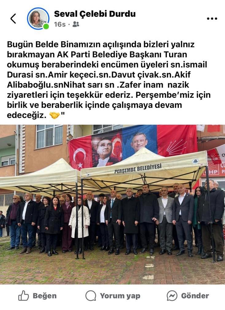 Cumhuriyet Halk Partisi Çaycuma İlçe Başkanlığı, Perşembe Beldesinde uzun yıllar belde başkanlığı ve belediye meclis üyeliği görevinde bulunan, partinin mihenk taşlarından olan Belde Başkanı Mevlüt Çelebi’yi görevden alarak yerine Seval Çelebi’yi Belde Başkanı olarak atamış ve Perşembe Belde binasının açılışını gerçekleştirmişti.