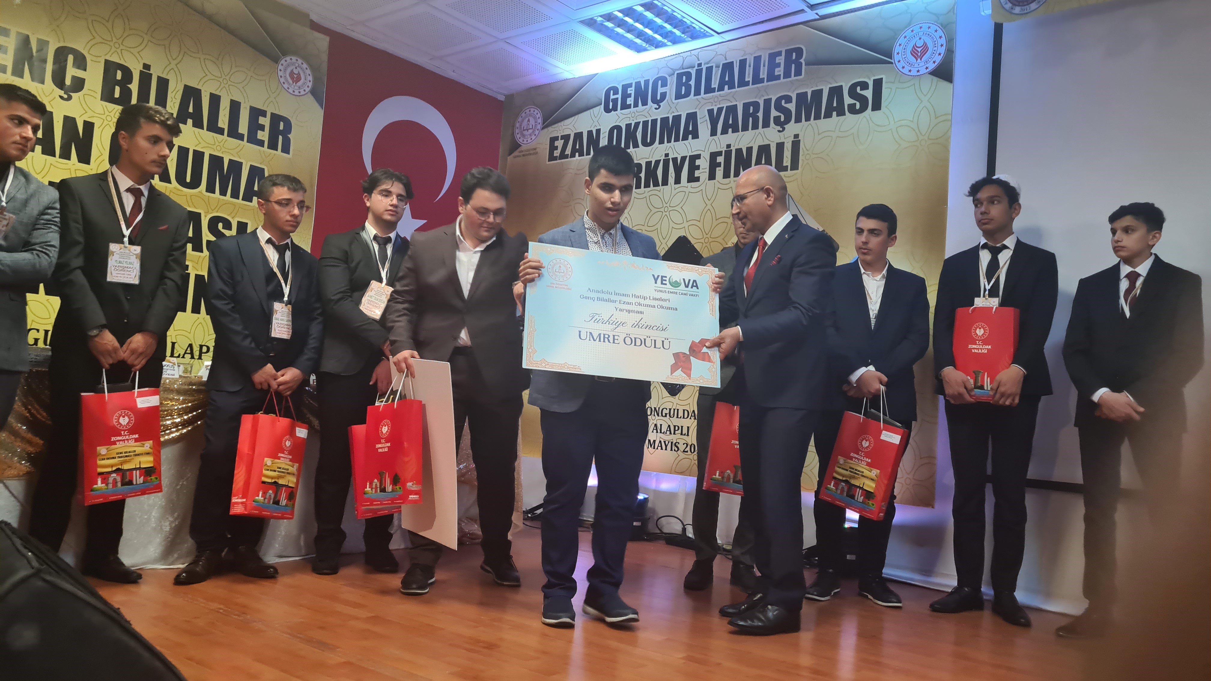 Genç Bilaller Ezan Okuma Yarışması Türkiye Finali’nde dereceye giren öğrencilerin ödülleri ve hediyeleri, Vali yardımcısı Turgut Subaşı Tuncay, Din Oğretimi Genel Müdürlügü Daire Başkanı İhsan Erkul, Alaplı Kaymakamı Vedat Yılmaz, tarafından verildi.