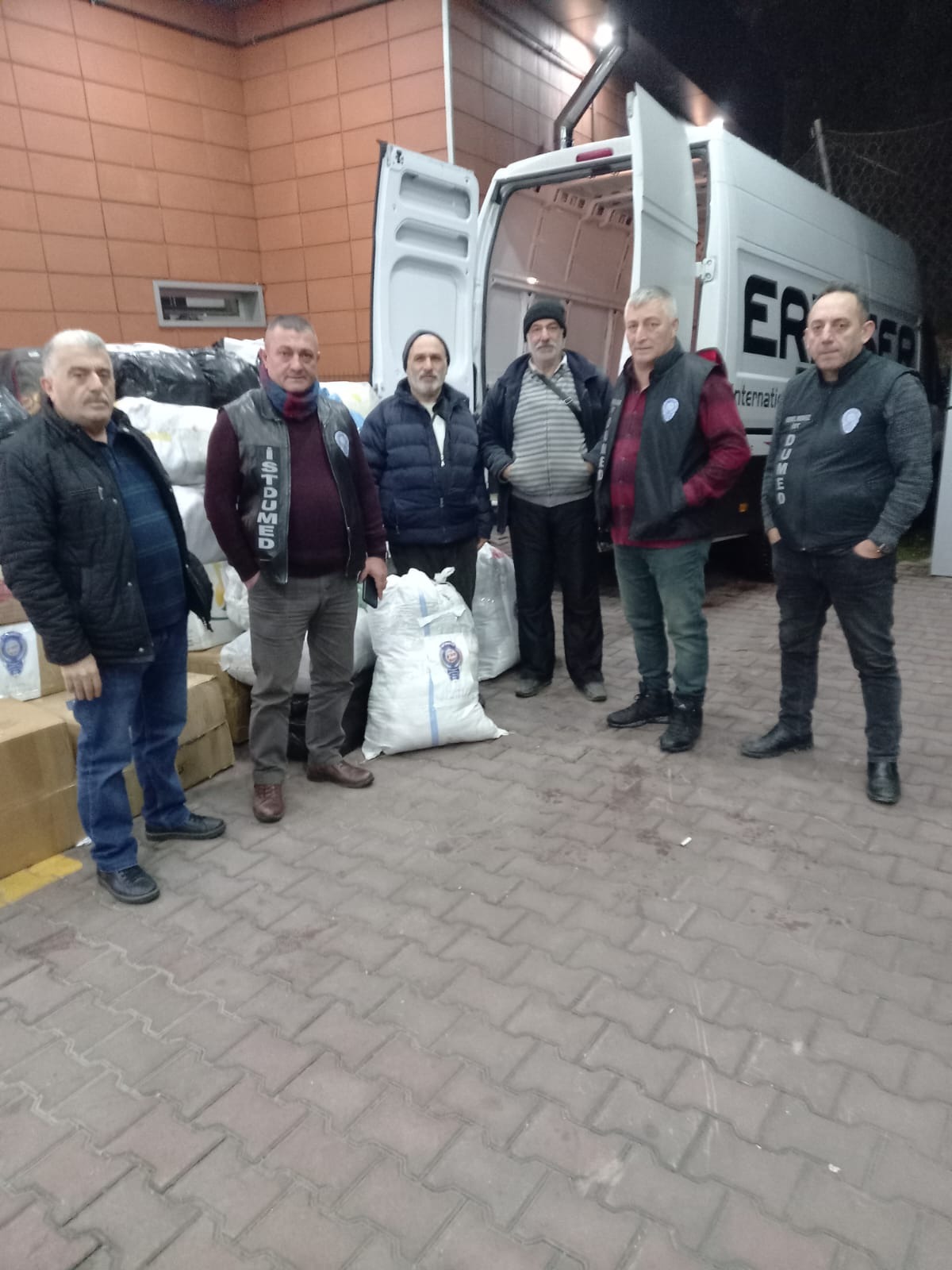 Genel Başkan İsmail Karadağ ,Başkan Yardımcısı Erkan Aydın, teşkilat başkanı Arzu Civelek, Batı Karedeniz bölge başkanı Hakan Çebi, Sinan Kargıdan ve Zonguldak İl temsilcisi Münevver Ķüçukertunç tarafından toplanıp bizzat deprem bölgelerine toplanan yardımların teslimatını yaptılar.