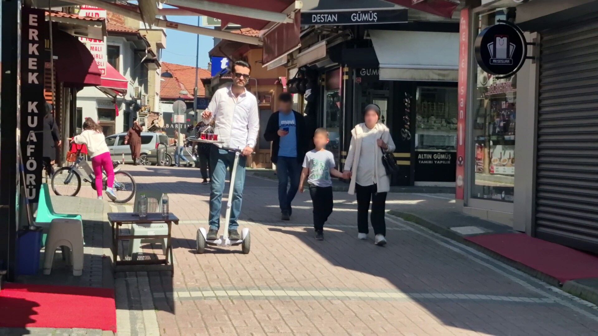 Bartın Kırtepe Mahallesi Hükümet Caddesi'nde 1 yıl önce çay ocağı işletmeye başlayan Basri Akbıyık, esnafın çay talebine yetişemeyince elektrikli araç ile hizmet vermeyi düşündü. 'Cincır' olarak bilinen elektrikli kaykay alan Akbıyık, elinde tepsisi ile cincır üstünde çay dağıtımına başladı. Hızlı bir şekilde çay dağıtımı gerçekleştirmeye başlayan Akbıyık, çok fazla yorulmadan dağıtımı yapmaya başladı.