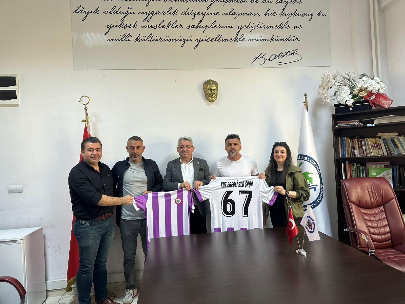 Geçen yıl Kdz. Ereğli Belediyespor Kadın Futbol Takımı ile Play-Off lara kalarak başarılı bir sezon geçiren tecrübeli teknik direktörlerin direktifleri doğrultusunda yeni sezon çalışmalarına hız verildi. İmza töreninde As Başkan Muhammet Ali Ateş, Kulüp Mali İşler Sorumlusu Recep Köksal ve Kadın Futbol Takımı Sorumlusu Cansu Yılmaz yer aldı.