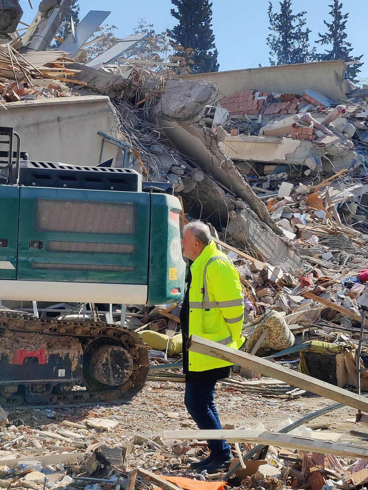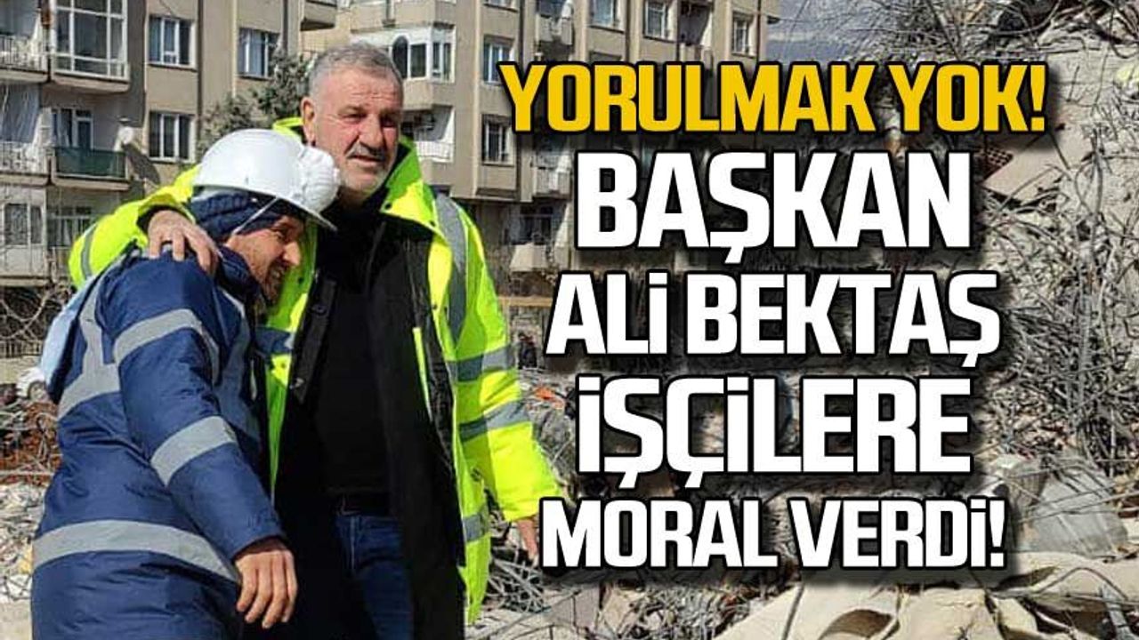 Diğer belediye başkanları ile birlikte deprem bölgesine giden Kozlu Belediye Başkanı Ali Bektaş da belediye personellerine moral olarak enkaz temizleme ve arama kurtarmada destek sağlamaya çalışıyor.