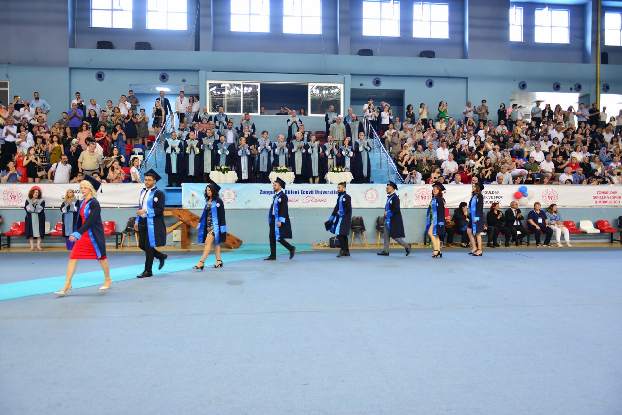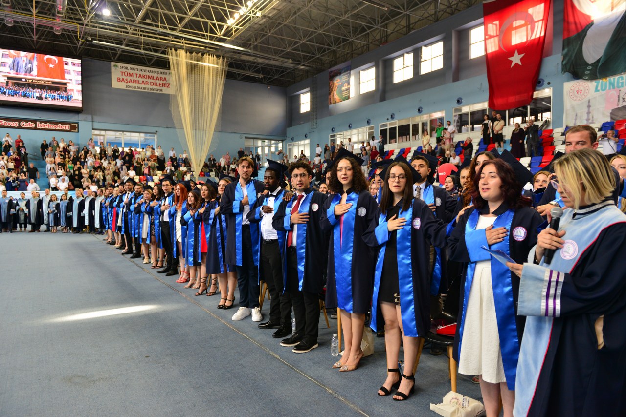 Marşı’nın okunmasıyla başlayan törende, dönem birincisi Dr. Melda Kara, mezunlar adına bir