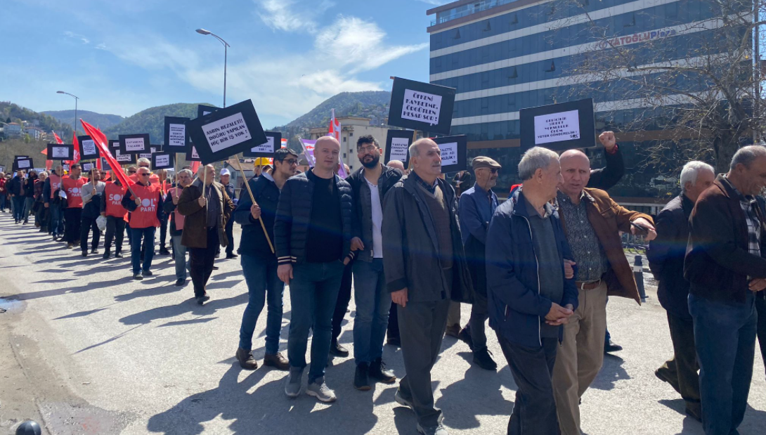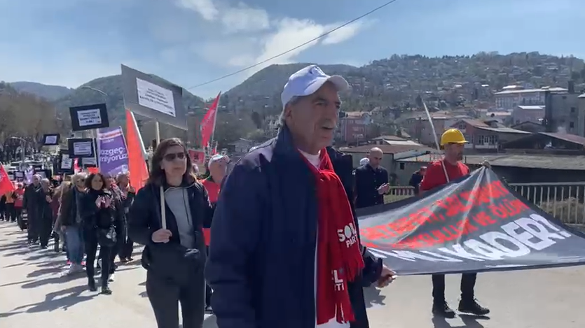 İstasyon Caddesi’nden başlayan yürüyüş Madenci Anıtı önünde son buldu. Yürüyüş sonrası Sol Parti Zonguldak İl Başkanı İsmail Yıldız basın açıklaması yaptı