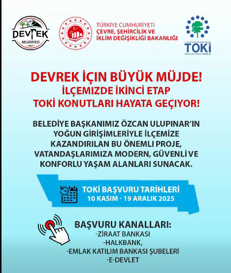 Devrek Belediyesi’nden yapılan açıklamada, “İlçemizin gelişimi ve halkımızın refahı için çalışmaya devam ediyoruz. TOKİ’nin ikinci etap konutlarıyla Devrek daha da güzelleşecek” denildi.