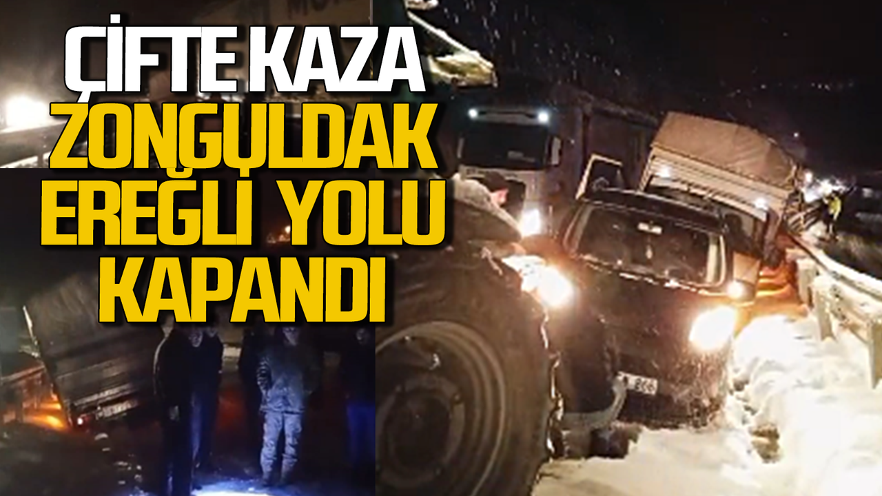 Zonguldak-Ereğli yolu üzerinde yolun kaygan olması nedeniyle 2 araç kayarak kanala düşerken, 1 tır da arızalanarak yolu tamamen kapattı.