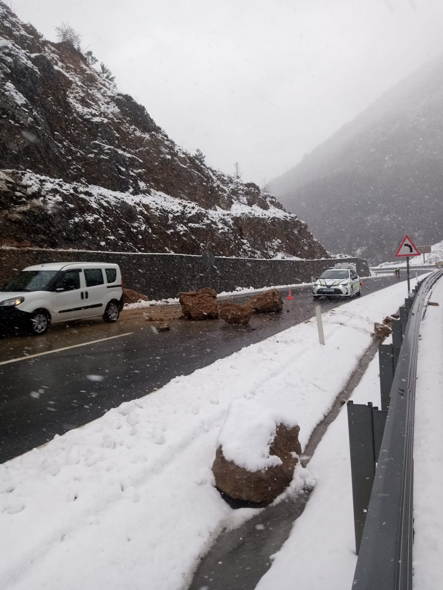 Ekiplerin bölgede güvenlik önlemi almasının ardından karayolunda ulaşım kontrollü olarak sağlanıyor.