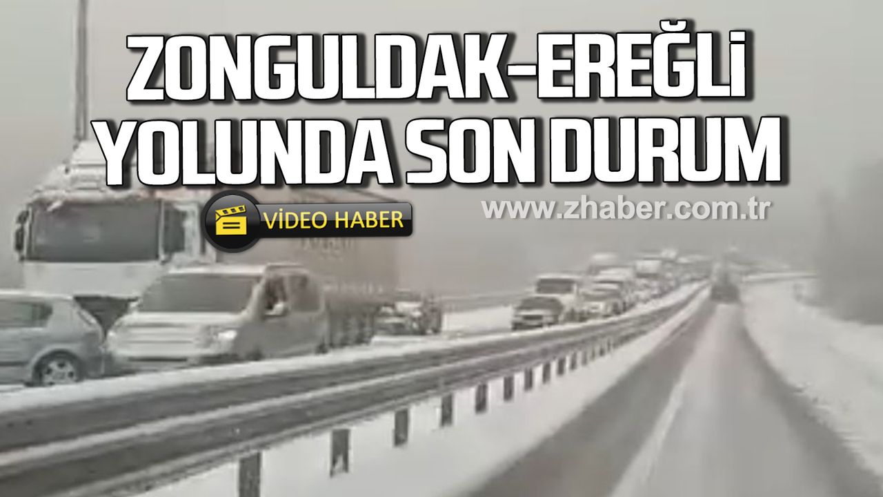 Meteoroloji Genel Müdürlüğünün uyarılarının ardından Zonguldak’ta yoğun kar yağışı aralıklarla devam ediyor. Kdz. Ereğli’de etkili olan yoğun kar yağışı nedeniyle trafik durma noktasına geldi, uzun araç kuyrukları oluştu.