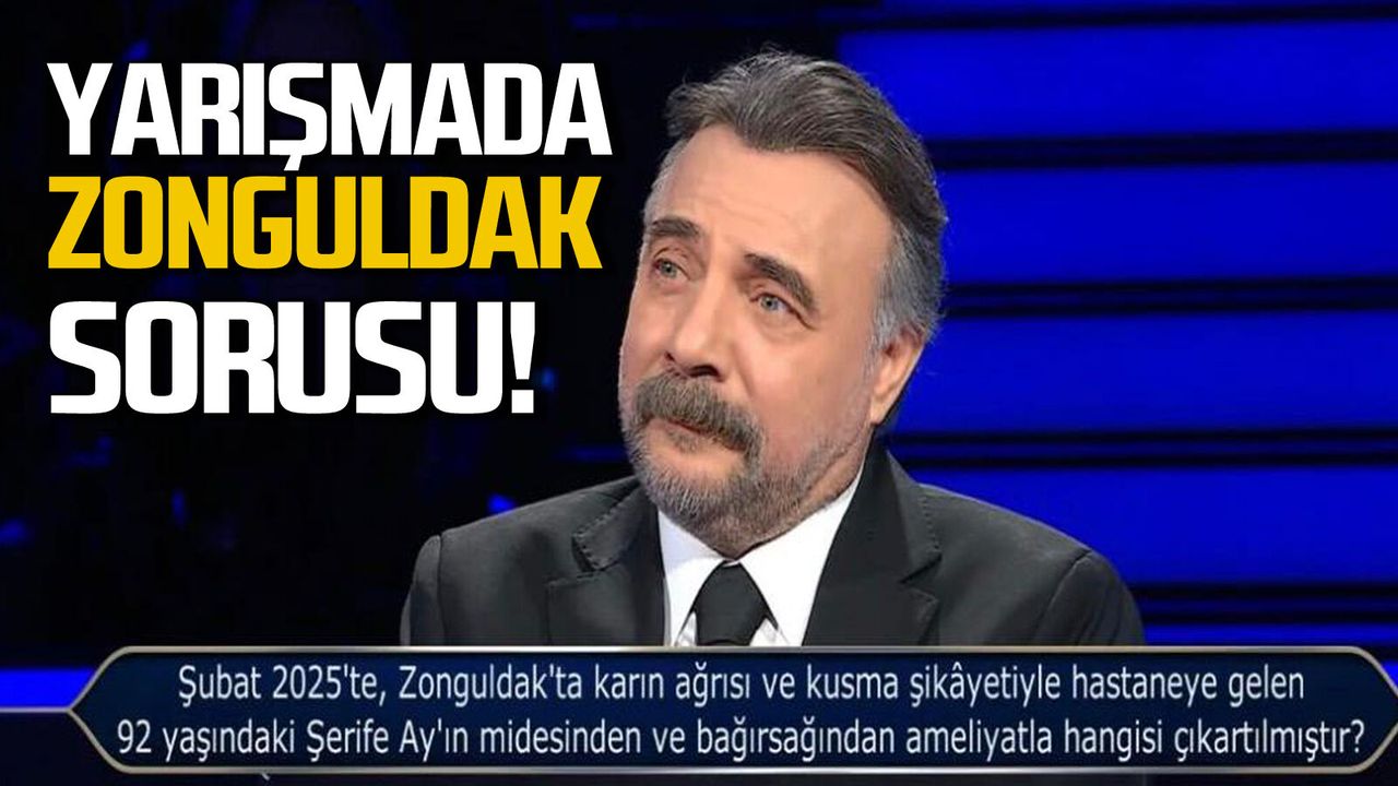 100 bin TL'lik soru olarak yarışmacı Kader Yıldız'a sorulan soruda, "Şubat 2025’te, Zonguldak’ta karın ağrısı ve kusma şikâyetiyle hastaneye gelen 92 yaşındaki Şerife Ay’ın midesinden ve bağırsağından ameliyatla hangisi çıkartılmıştır?" denildi.