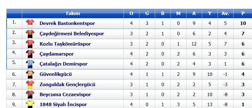 Çaydamarspor0 - 1Zonguldak Gençlergücü Beycuma Cezaevispor1 - 01848 Siyah İncispor Devrek Bastonkentspor1 - 1 Çaydeğirmeni Belediyespor Güvenlikgücü 1 - 2 Çatalağzı Demirspor