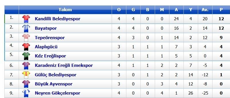 Karadeniz Ereğli Emekspor-Büyük Ayvenspor Alaplıgücü-Tepeörenspor Neyren Gökçelerspor -Kdz Ereğlispor Gülüç Belediyespor-Kandilli Belediyespor