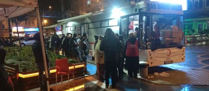 Sabah saatlerinden itibaren kan bağışında bulunmak isteyenler, olumsuz havaya rağmen Kızılay Mobil Kan Toplama Merkezleri önünde gece geç saatlere kadar uzun kuyruklar oluşturdu. Gece geç saatlere kadar kan aracı önünde uzun kuyruklar oluşturan vatandaşlar, deprem bölgesine kan bağışlamak için adeta seferber oldu.