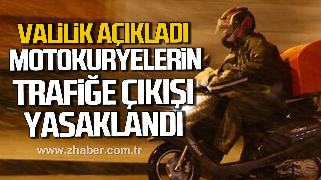 Zonguldak Valisi Osman Hacıbektaşoğlu, motosiklet, elektrikli scooter ve motokuryelerin trafiğe çıkışının 1 Ocak Perşembe günü ile 2 Ocak Cuma günü saat 12.00’a kadar yasaklandığını duyurdu.