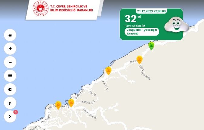 Öte yandan Zonguldak’ın merkezinde bulunan hava kalitesi izleme istasyonlarına göre ise orta seviyede hava soluyoruz.
