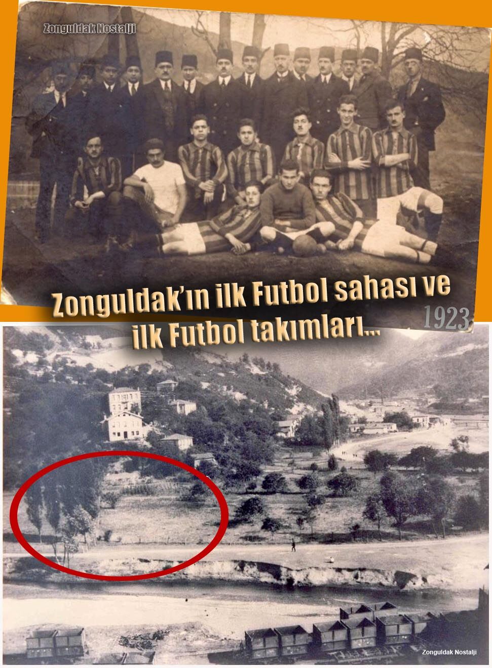 “Zonguldak’ta, forma rengi yeşil-kırmızı Işıkocağı (Fotoğraf karesindeki takım)… Forma rengi sarı-kırmızı İdmanbirliği futbol takımları kendi aralarında özel maçlar yapılırdı...