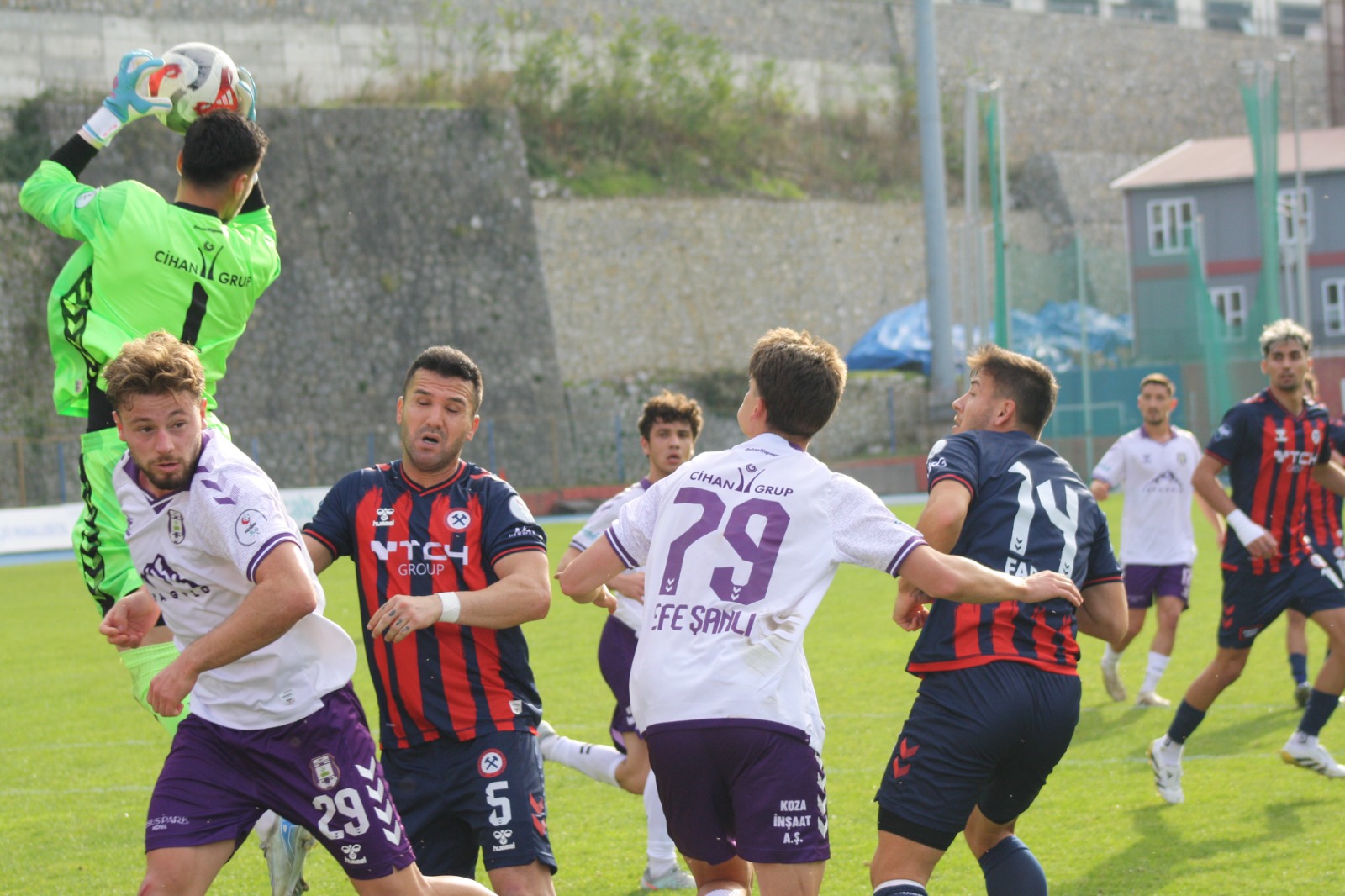 Dk. 85 Zonguldaksporlu Muhammet Leyis Alzın'in alta at dediği pozisyonda Özcan Yaşar sert vurdu ancak top yan ağlarda kaldı.