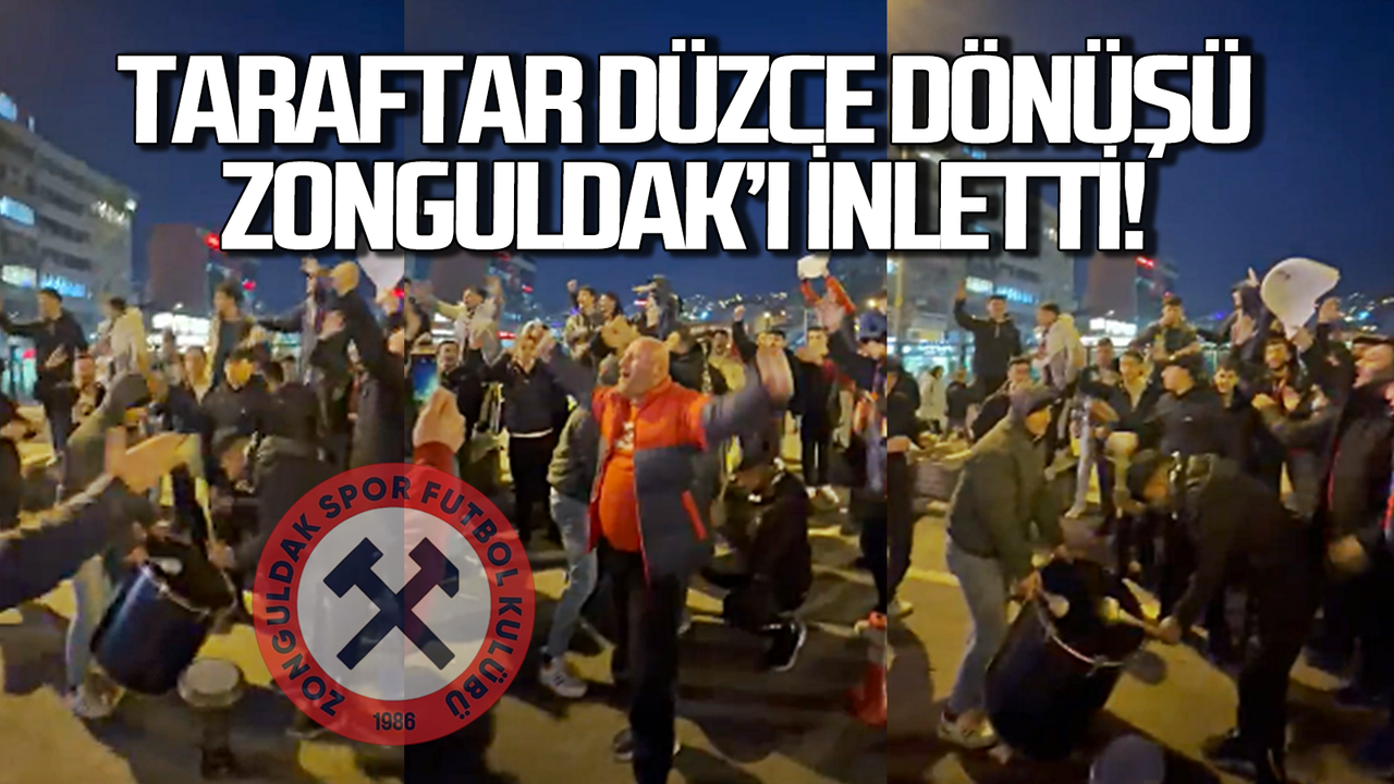 Düzce deplasmanında 90 dakika boyunca susmadan takımlarını destekleyen taraftarlar, Zonguldak’a döner dönmez “Şampiyon Zonguldakspor” tezahüratlarıyla kenti adeta inletti. Taraftarların bu büyük coşkusuna vatandaşlar da alkışlarla destek verdi.