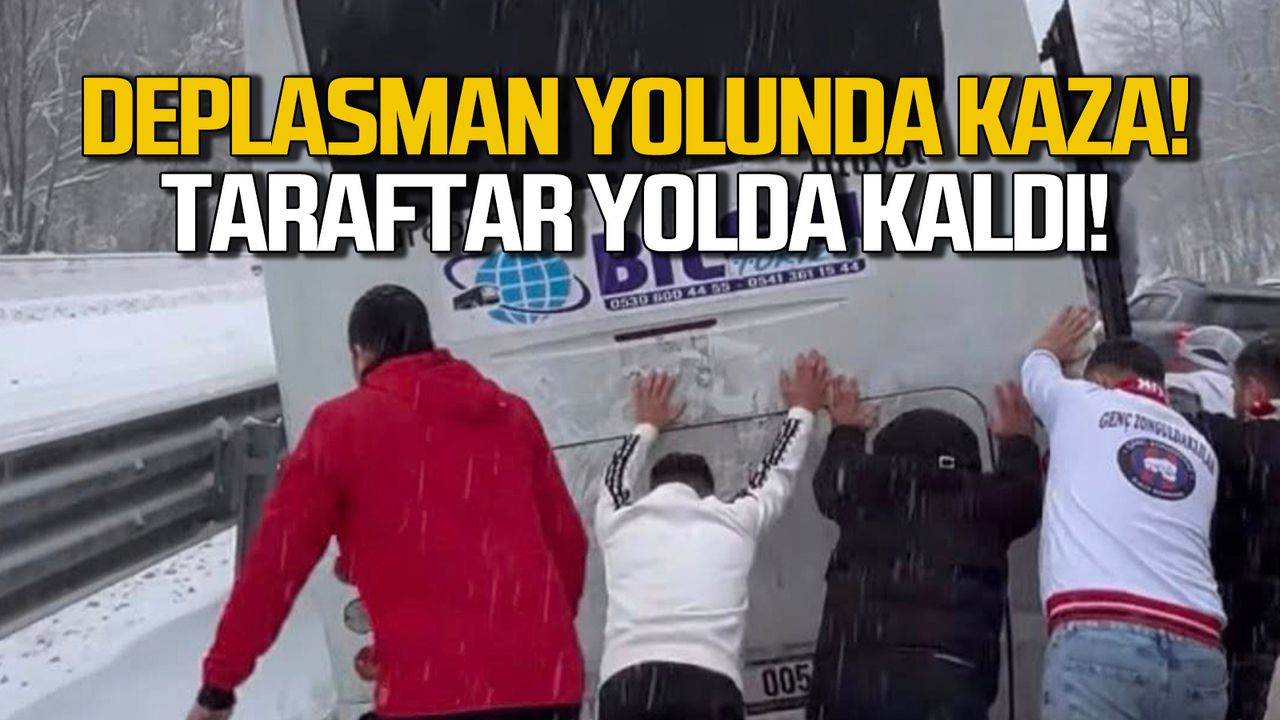 Zonguldakspor’un deplasmanda oynayacağı karşılaşma için Düzce’ye giden taraftarları taşıyan otobüs, yoğun kar yağışı nedeniyle kaza yaptı.