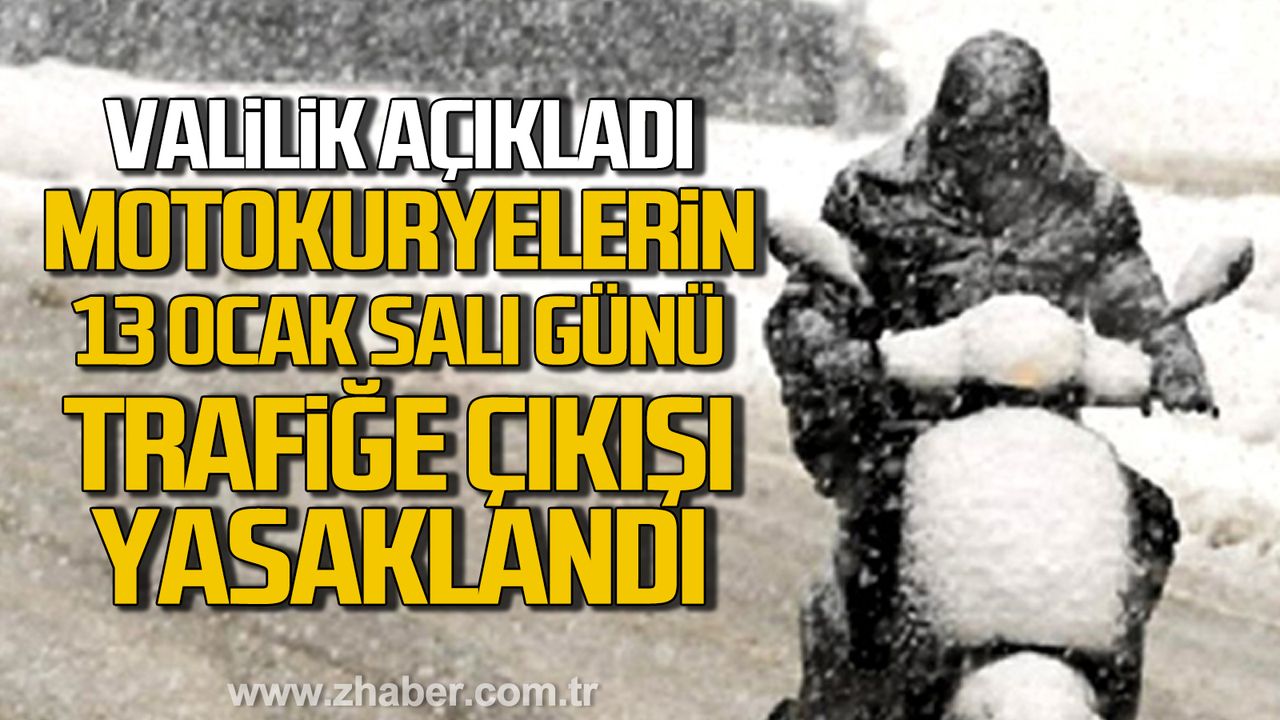 Zonguldak Valisi Osman Hacıbektaşoğlu, motosiklet, elektrikli scooter ve motokuryelerin trafiğe çıkışının 13 Ocak Salı günü yasaklandığını duyurdu.