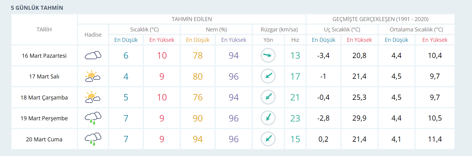 Meteoroloji Genel Müdürlüğü olarak yapılan değerlendirmelere göre: Ülkemiz genelinin parçalı ve çok bulutlu, Doğu Akdeniz, İç Anadolu’nun doğusu, Orta ve Doğu Karadeniz, Doğu ve Güneydoğu Anadolu, Kocaeli, Yalova, Sinop ve Kastamonu çevreleri ile Balıkesir ve Bursa’nın kuzey kesimlerinin aralıklı yağışlı geçeceği tahmin ediliyor. Yağışların genellikle yağmur ve sağanak, Doğu Karadeniz’in iç kesimlerinin yüksekleri ile Doğu Anadolu’nun doğusunda karla karışık yağmur ve kar şeklinde olması bekleniyor.