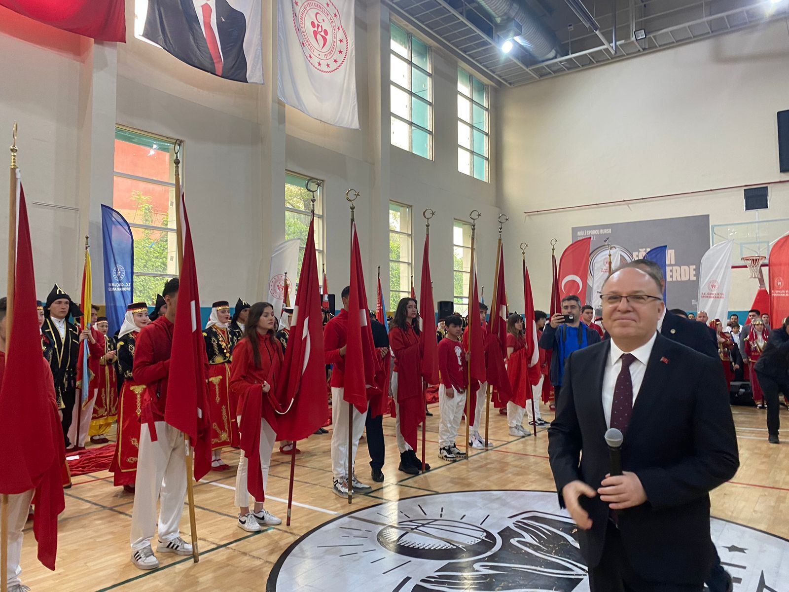 Konuşmaların ardından Gençlik Spor İl Müdürlüğü Kapalı Spor Salonu’nda halk oyunları ve çeşitli spor dalında eğitim gören sporcular gösterilerini sundu.