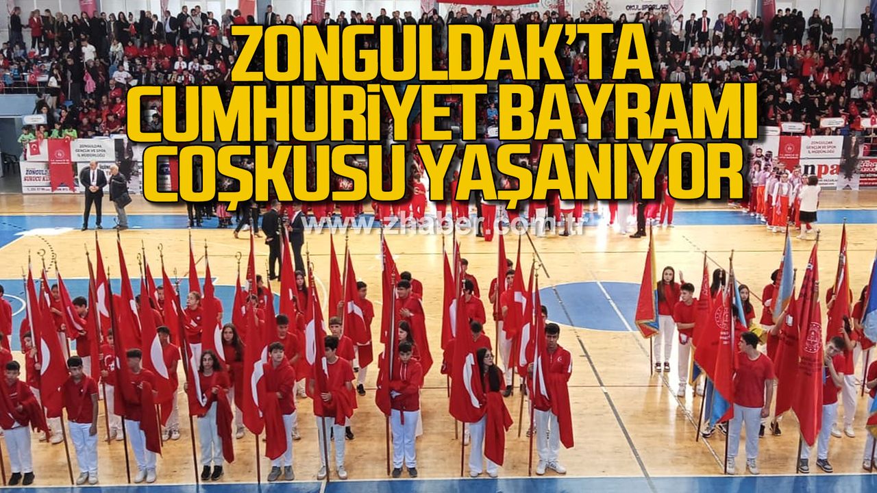 Zonguldak’ta 29 Ekim Cumhuriyet Bayramı kutlamaları, Site Kapalı Spor Salonu’nda gerçekleştirildi. Vali Osman Hacıbektaşoğlu ve eşi Güney Hacıbektaşoğlu’nun katıldığı törende,CHP Genel Başkan Yardımcısı Deniz Yavuzyılmaz, AK Parti Zonguldak Milletvekili Ahmet Çolakoğlu, AK Parti Milletvekili Muammer Avcı, Zonguldak Belediye Başkanı Vekili Adil Bahadır, Cumhuriyet Başsavcısı Gökhan Kapağan, İl Emniyet Müdürü Sinan Ergen ve İl Jandarma Komutanı Alay Barış Cücen ile çok sayıda siyasi parti temsilcisi, öğrenci grupları ve vatandaşlar katıldı.