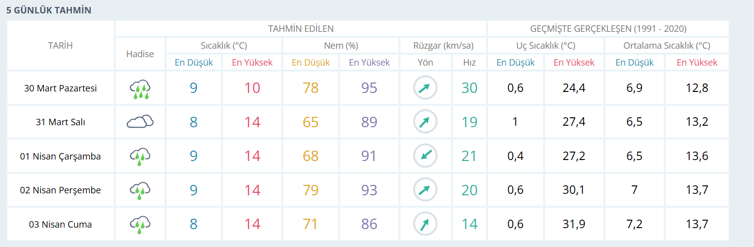 ZONGULDAK’IN 5 GÜNLÜK HAVA TAHMİN RAPORU ŞU ŞEKİLDE: