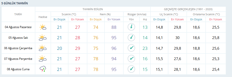 ZONGULDAK’IN 5 GÜNLÜK HAVA TAHMİN RAPORU ŞU ŞEKİLDE: